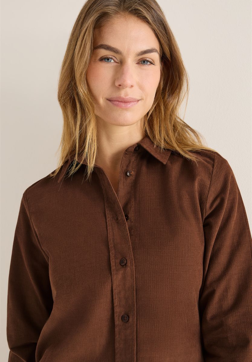 Die Cordbluse von CECIL für Damen ist aus reiner Baumwolle gefertigt und punktet mit ihrem weichen Cordstoff. Hemdkragen und langärmeliger Schnitt mit Knopf-Bündchen machen sie zum vielseitigen Kombiteil. Ideal für strukturstarke Casual-Looks. Damenbluse Hemdkragen Langarm mit Bündchen und Knopf Reine Baumwolle Weicher Cordstoff Material: 100% Baumwolle FARBNR