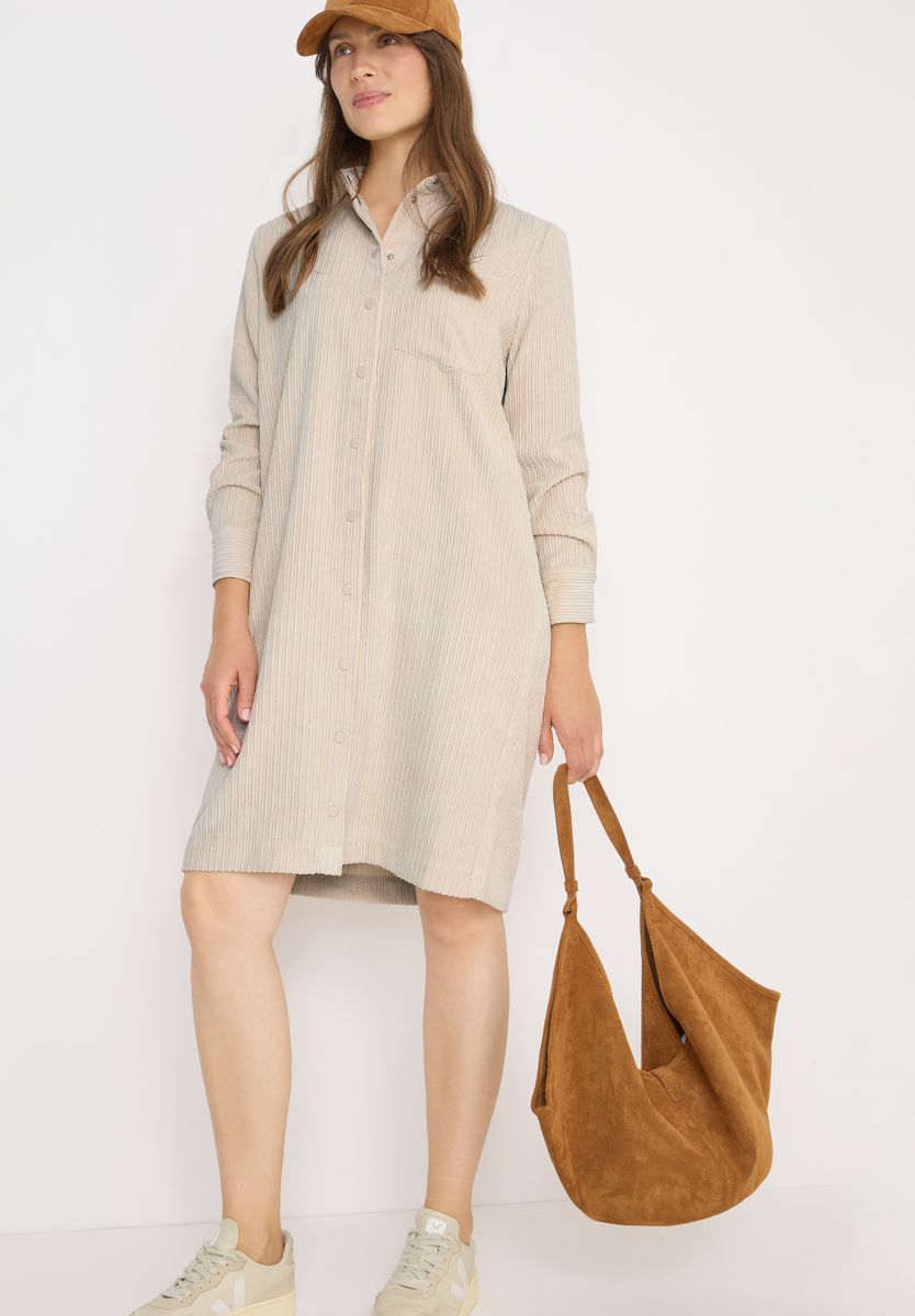 Das Cordkleid von CECIL für Damen begeistert mit softer Breitcord-Qualität und einer bequemen Passform. Der Hemdkragen, die durchgehende Knopfleiste und die Brusttasche setzen klassische Akzente, während der knielange Schnitt vielseitig tragbar bleibt. Ein unkomplizierter Lieblingslook für gemütliche Tage. Knielanges Kleid mit Brusttasche Hemdkragen Langarm Durchgehende Knopfleiste Softer Breitcord Material: 90% Polyester, 10% Nylon FARBNR