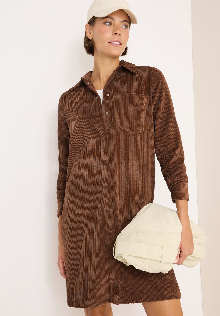 Das Cordkleid von CECIL für Damen begeistert mit softer Breitcord-Qualität und einer bequemen Passform. Der Hemdkragen, die durchgehende Knopfleiste und die Brusttasche setzen klassische Akzente, während der knielange Schnitt vielseitig tragbar bleibt. Ein unkomplizierter Lieblingslook für gemütliche Tage. Knielanges Kleid mit Brusttasche Hemdkragen Langarm Durchgehende Knopfleiste Softer Breitcord Material: 90% Polyester, 10% Nylon FARBNR