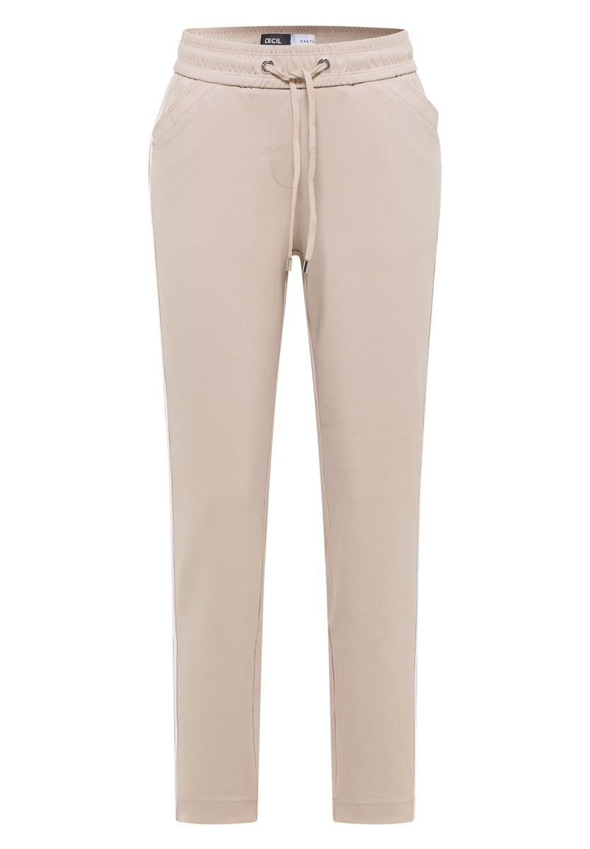 Die Hose im Style Tracey von CECIL für Damen begeistert mit sportivem Gallonstreifen und bequemem Casual Fit. Mid Waist, Slim Legs und ein elastischer Bund mit Tunnelzug sorgen für eine lässige Passform. Seitliche Taschen runden das Design funktional ab – ideal für entspannte Freizeitlooks. Damenhose im Casual Fit Mid Waist und Slim Legs Elastischer Bund mit Tunnelzug Seitliche Taschen Sportiver Gallonstreifen Material: 82% Polyester, 18% Elasthan FARBNR