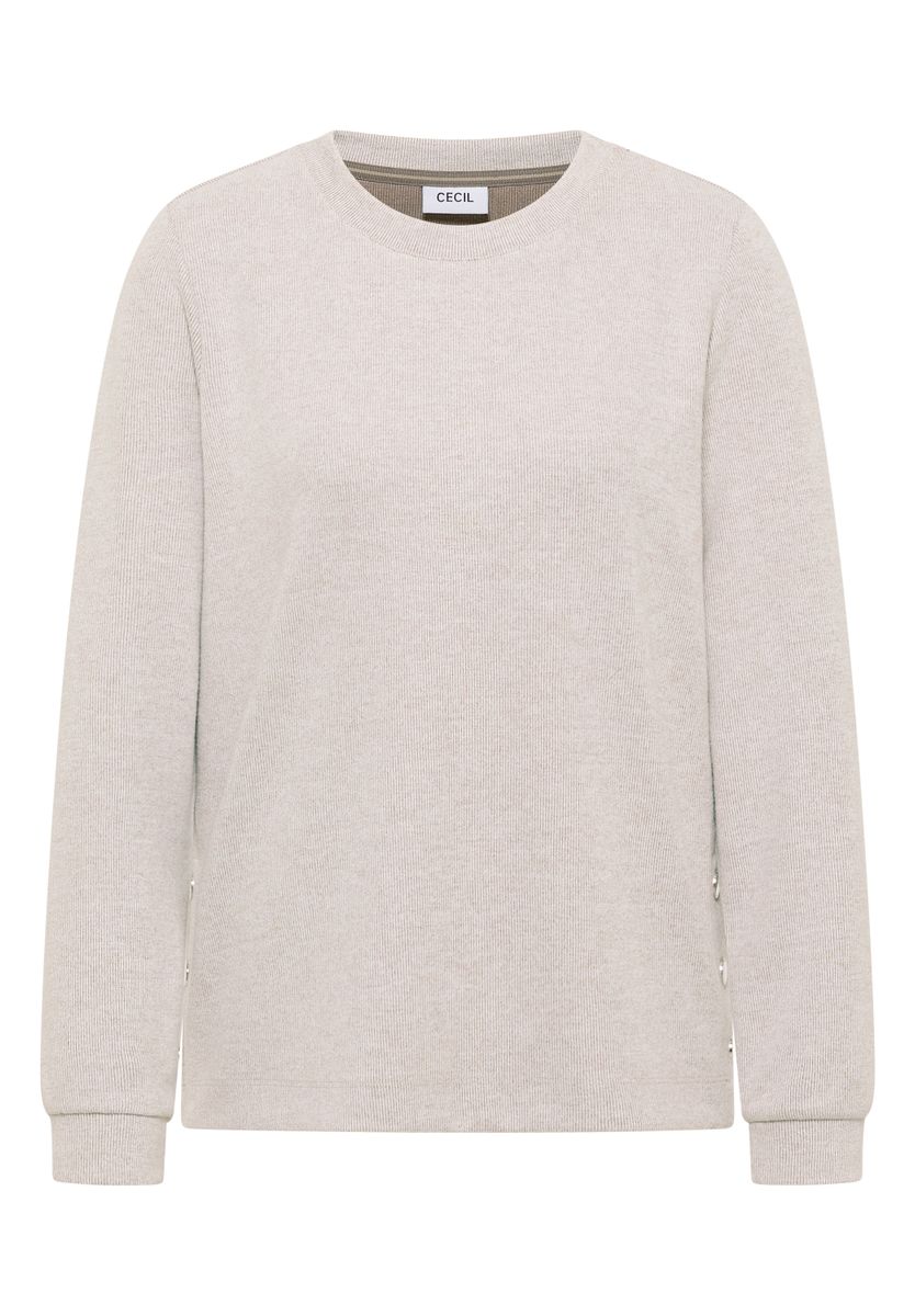 Das Melange Shirt von CECIL für Damen begeistert mit seinem klassischen Rundhalsausschnitt und dezenten Knopfdetails an den Seiten. Der Viskosemix mit Stretchanteil und die Bündchen am Langarm sorgen für ein angenehmes Tragegefühl. Perfekt für bequeme Alltagslooks mit liebevollen Details. Damenshirt Rundhalsausschnitt Langarm mit Bündchen Knopfdetail an den Seiten Viskosemix mit Stretchanteil Material: 59% Viskose, 37% Polyester, 4% Elasthan FARBNR