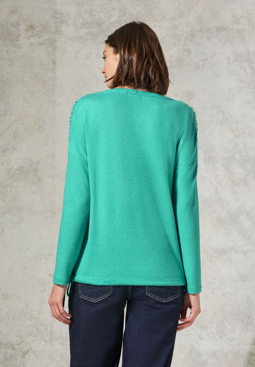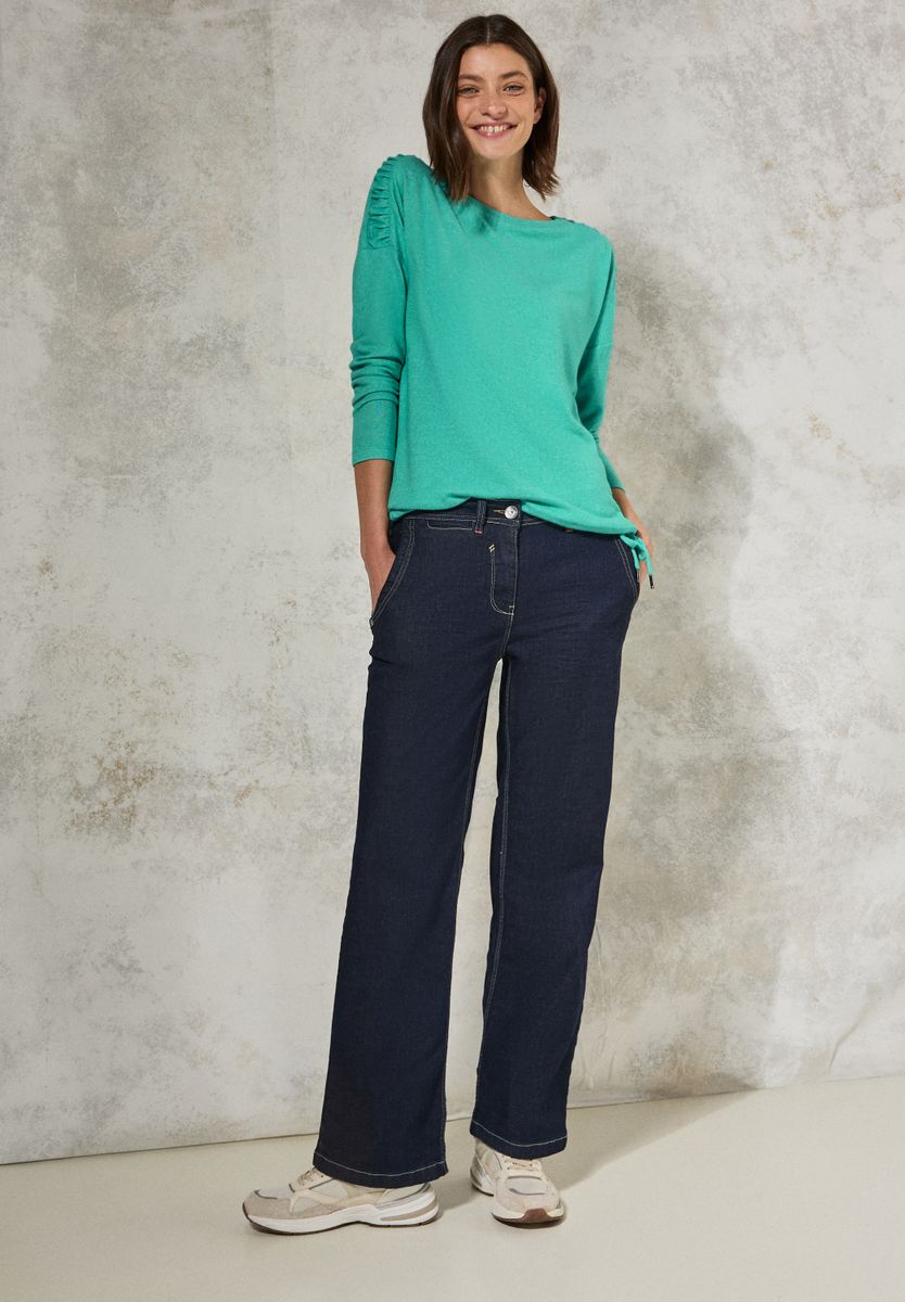 Dieses Shirt mit Raffung von CECIL für Damen überzeugt mit einem femininen U-Boot-Ausschnitt und einer stilvollen Raffung an der Schulter. Der Tunnelzug am Saum sorgt für eine individuelle Passform, während der weiche Materialmix Komfort bietet. Perfekt für einen entspannten Look. Damenshirt U-Boot-Ausschnitt Langarm Tunnelzug am Saum Raffung an der Schulter Material: 67% Viskose, 28% Polyester, 5% Elasthan