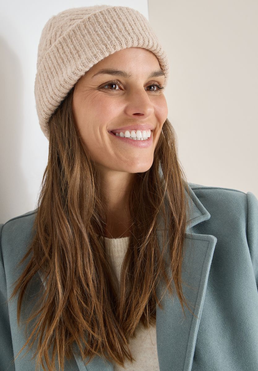 Diese Strickmütze von CECIL für Damen kombiniert ein strukturiertes Strickmuster mit gemütlichem Tragekomfort. Die unifarbene Optik lässt sich vielseitig kombinieren – perfekt für deinen winterlichen Look mit stilvollem Finish. Beanie Strickmuster Angenehmer Tragekomfort Material: 74% Polyester, 22% Polyacryl, 4% Elasthan FARBNR