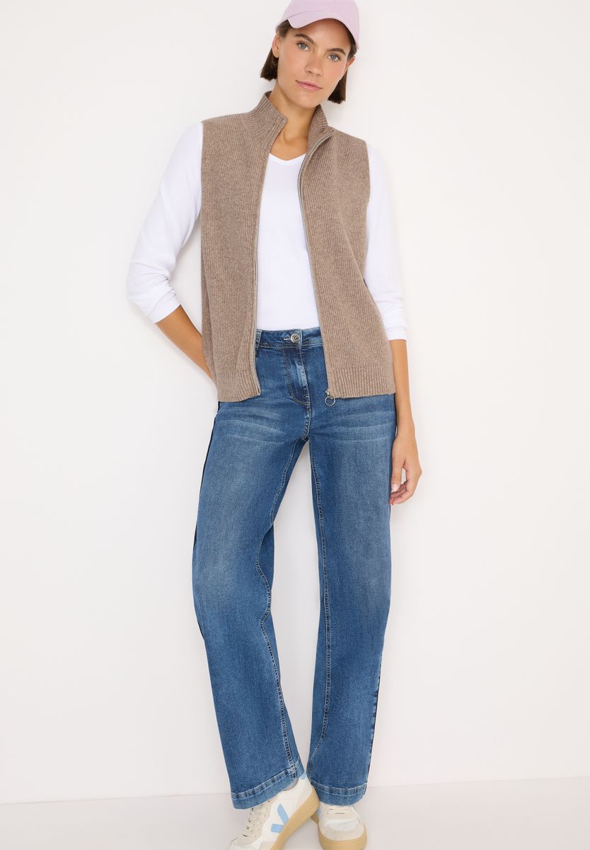 Die Strickweste von CECIL für Damen setzt mit ihrem Rippstruktur-Mix modische Akzente. Der ärmellose Schnitt mit Stehkragen und der bequeme Baumwollmix mit Stretchanteil sorgen für hohen Komfort. Perfekt für individuelle Layering-Outfits. Strickweste Stehkragen Ärmellos Rippstruktur-Mix Baumwollmix mit Stretchanteil Material: 37% Baumwolle, 34% Polyacryl, 26% Polyester, 3% Elasthan FARBNR
