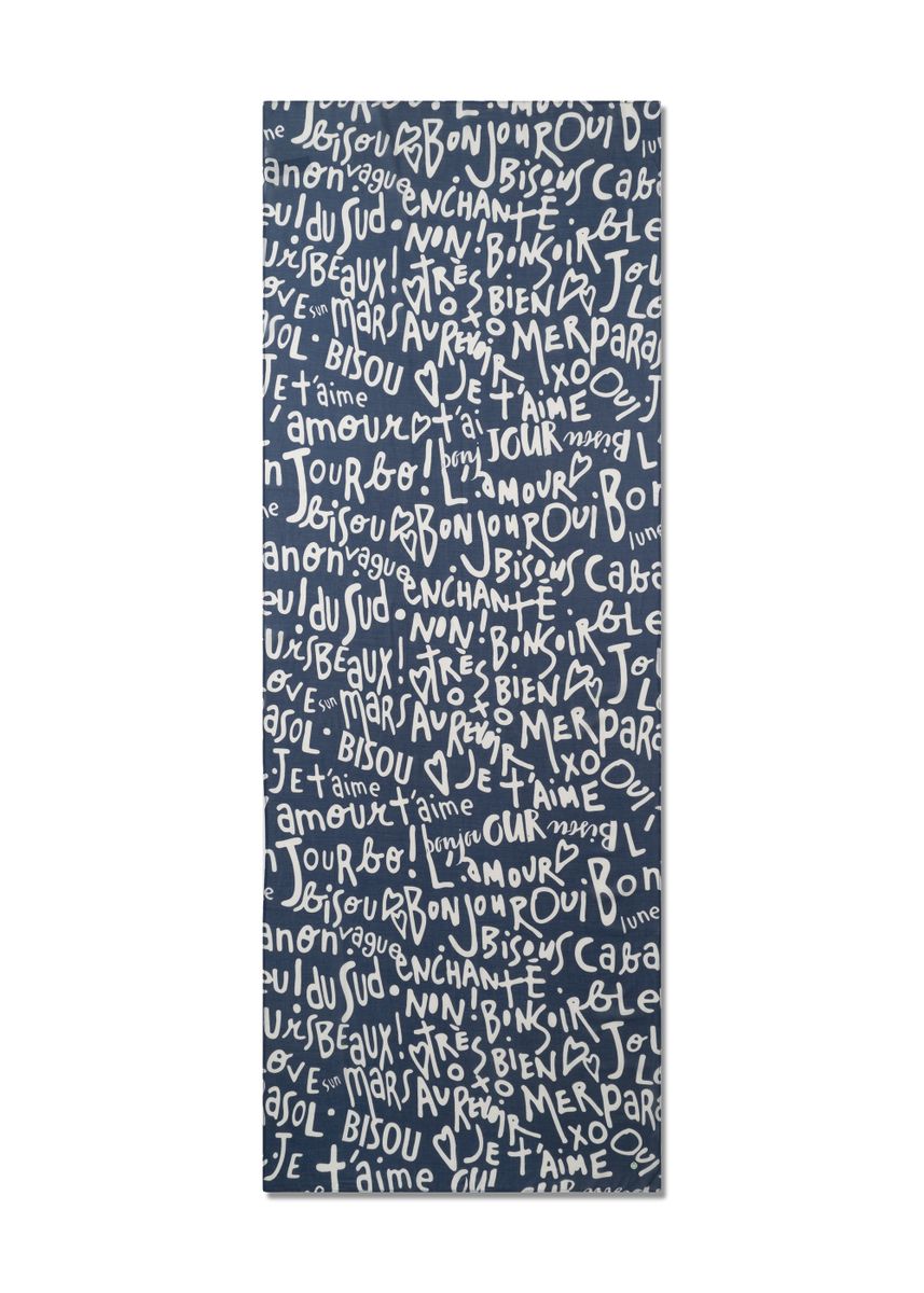 Schal aus feiner Modal-Baumwoll-Mischung mit französischen Schriftzügen