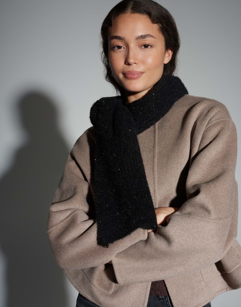 Maße: 168 x 30 cm, one size, flauschiger Griff, Jacquard, schimmernde Oberfläche mit Lurex, Rippstruktur, Metallisches Logo, Glitzer Details