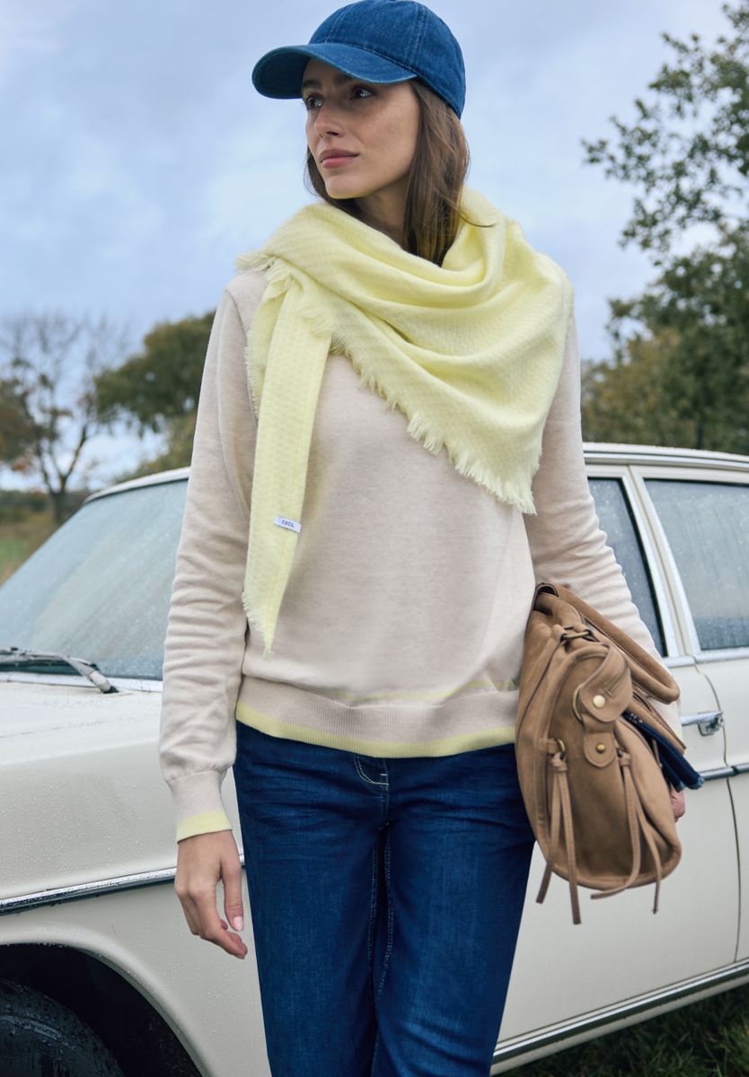 Dieses unifarbene Dreieckstuch von CECIL für Damen überzeugt mit feinen Fransen und einem angenehm soften Griff. Der klassische Schnitt lässt sich vielseitig tragen und macht das Tuch zu einem dezenten Begleiter für verschiedene Looks. Stofftuch Casual Unifarbe Feine Fransen Angenehmer Tragekomfort Material: 100% Polyester FARBNR