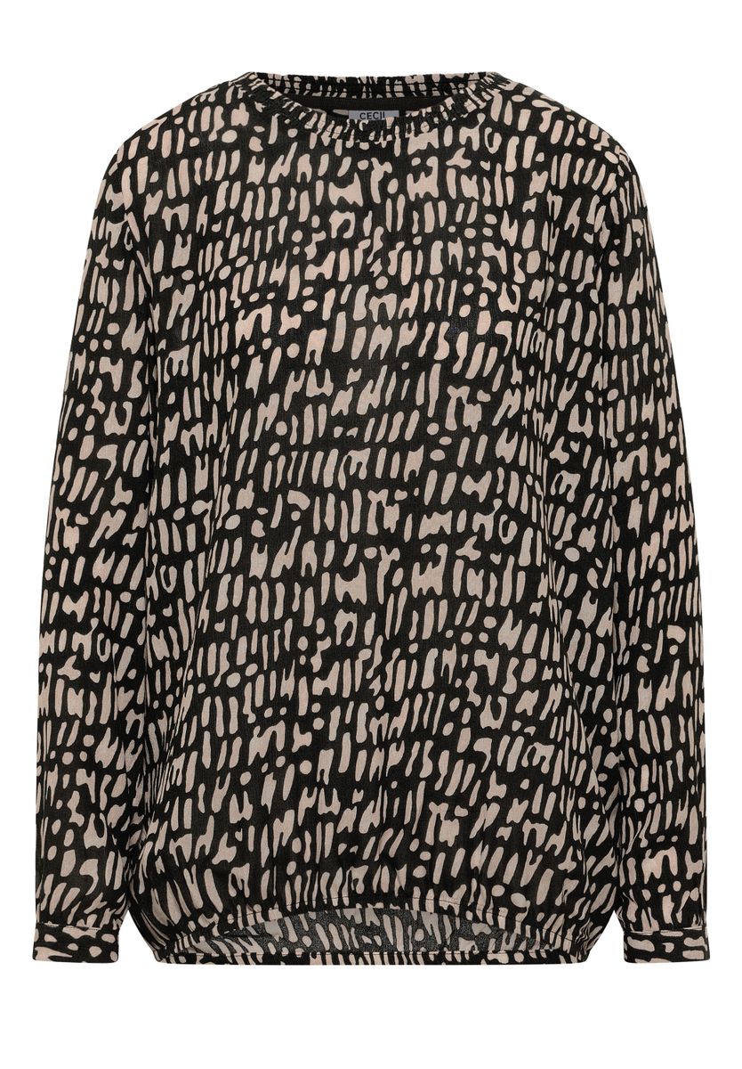 Die gemusterte Bluse von CECIL für Damen kombiniert einen grafischen Print mit charmanten Details wie einem Smock-Ausschnitt und dem elastischen Saum. Der softe Viskosemix mit Stretchanteil sorgt für hohen Tragekomfort. Perfekt für stilvolle Casual-Styles. Damenbluse mit grafischem Muster Rundhals mit Smockstruktur Elastischer Saum Langarm mit Bündchen Viskosemix mit Stretchanteil Material: 100% Viskose FARBNR