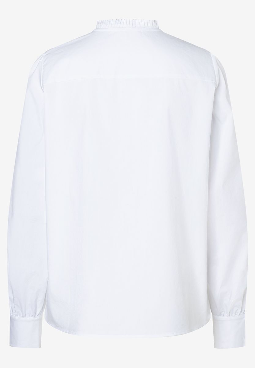Die weiße Bluse von MORE & MORE mit kleinem plissierten Stehkragen und langen weiten Ärmeln ist ein vielseitiges Lieblingsstück in Ihrem Kleiderschrank. Sie ist perfekt fürs Büro, aber auch zum Dinner oder für City-Looks easy kombinierbar.