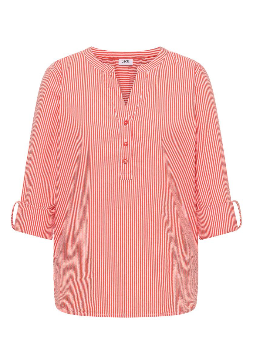 Leicht und vielseitig: Diese Seersucker Bluse von CECIL für Damen zeigt sich mit feinen Streifen, dekorativer Knopfleiste und gerundetem Saum mit seitlichen Schlitzen. mit ihrem entspannten Tragegefühl eignet sich die Bluse ideal für frische Casual-Looks. Seersucker Bluse Casual Split Neck Langarm Vielseitiger Allrounder Material: 75% Baumwolle, 25% Modal FARBNR