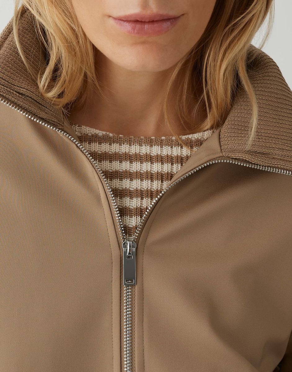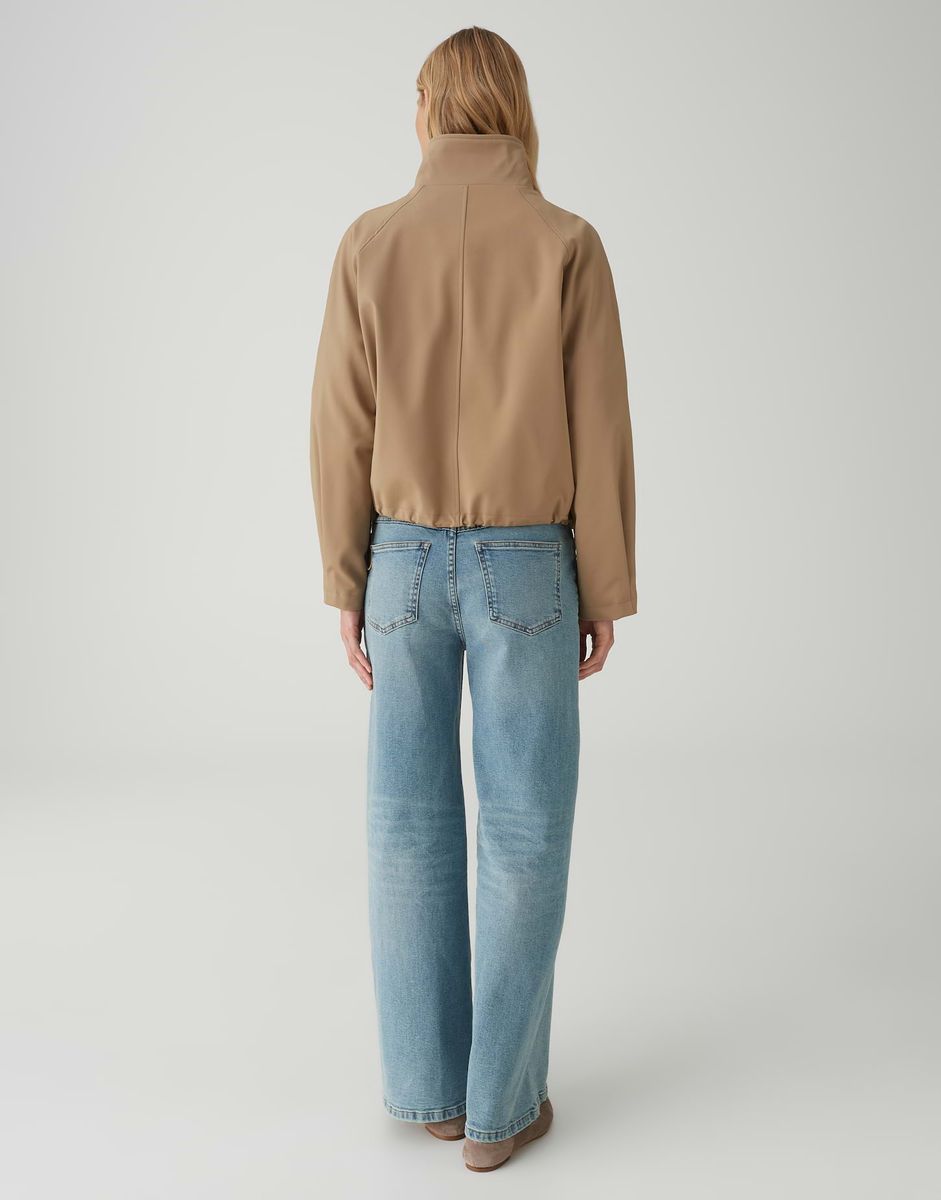 lockere Passform, ovaler Schnitt, leicht verkürzter Schnitt, Langarm, Stehkragen, Rückenlänge ca. 55 cm bei Größe 36, Model Größe 177 cm – trägt Größe 36, Webware, glattes Innenfutter, fester Griff, formstabil, schräge Eingrifftaschen, Faltendetail am Ärmelsaum, geraffter Ballon-Saum, Tunnelzug am Saum, Strickkragen innen FARBNR