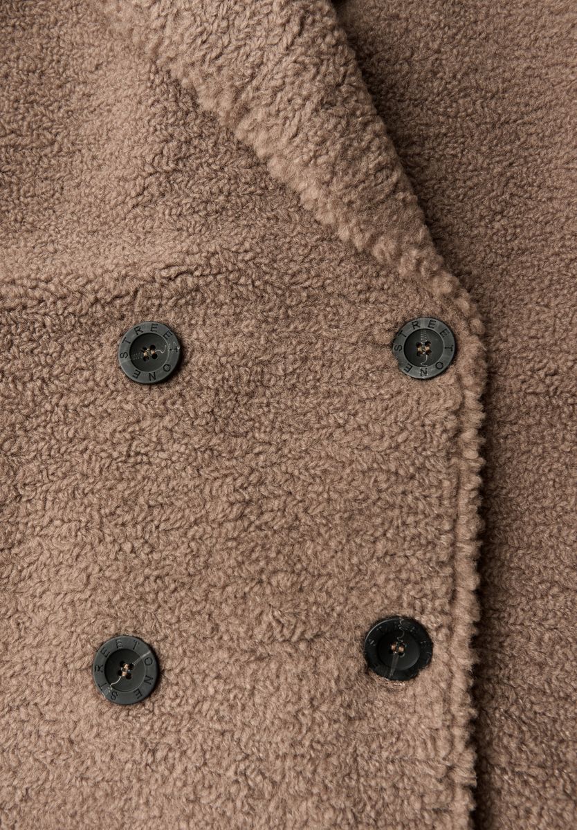 Die Teddy Caban Jacke von Street One für Damen begeistert mit ihrer soften Teddy-Qualität und klassischem Reverskragen. Seitliche Taschen und dekorative Knöpfe unterstreichen den femininen, modischen Look. Perfekt für gemütliche Herbst- und Winter-Outfits mit stilvollem Twist. Damenjacke Reverskragen Seitliche Taschen Knöpfe Softe Teddy-Qualität Material: Obermaterial: 100% Polyester; Futter: 100% Polyester FARBNR