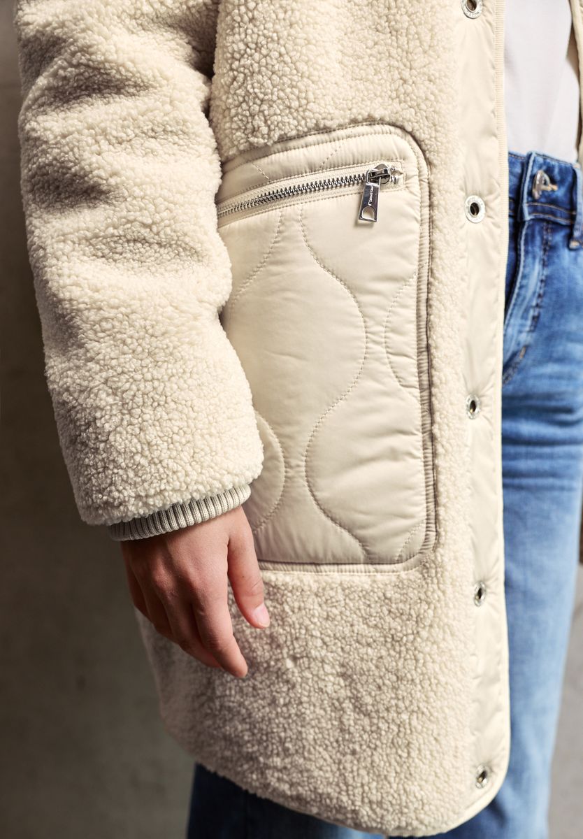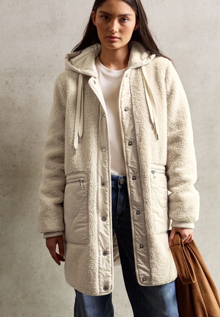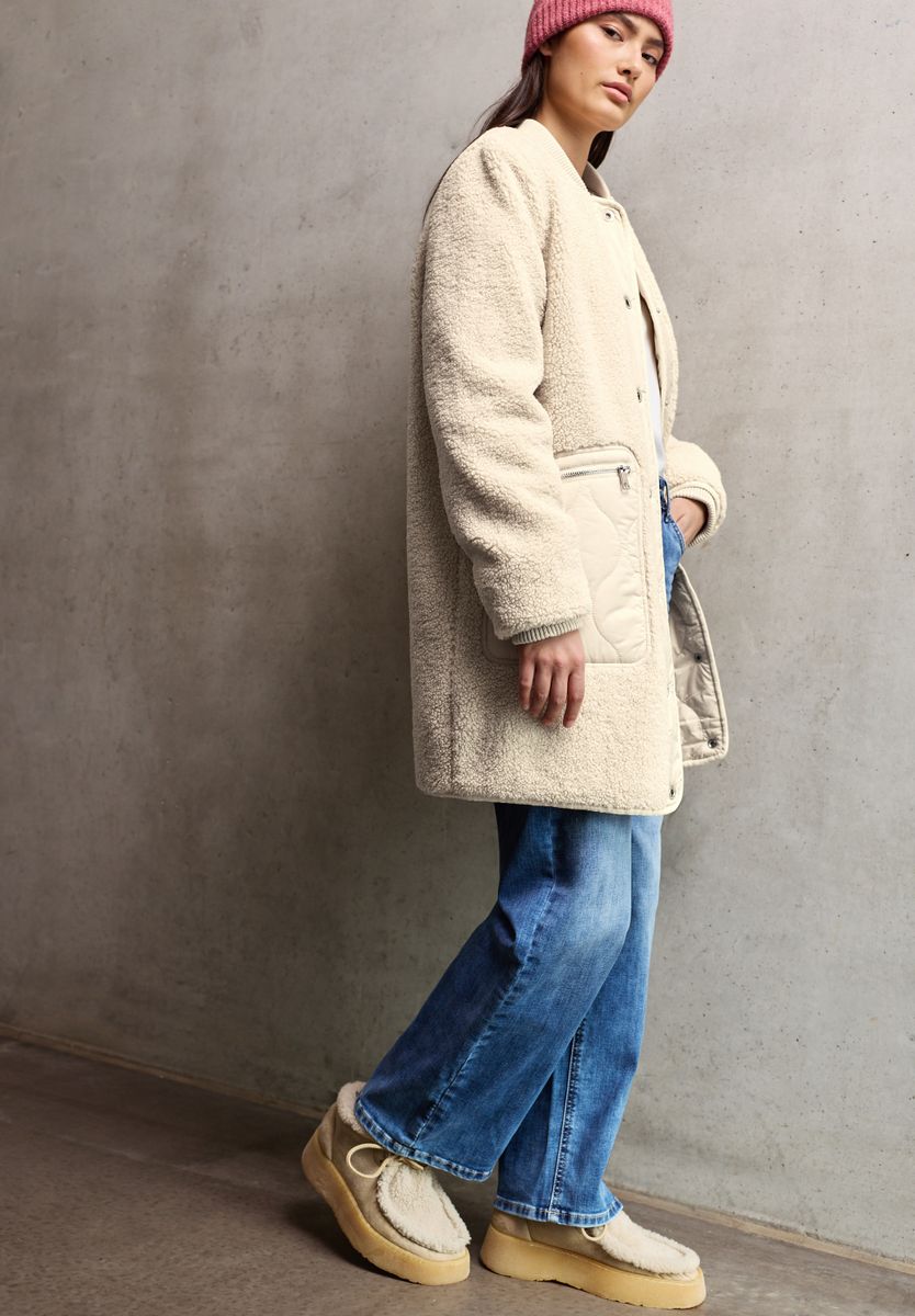 Der Teddy-Mantel von Street One Studio für Damen vereint Komfort und Funktion auf stilvolle Weise. Die abnehmbare Kapuze, Softshell-Details und seitliche Taschen machen den Mantel zum praktischen Allrounder. Die kuschelige Qualität sorgt für angenehmen Tragekomfort – perfekt für urbane Winter-Looks. Damenmantel Abnehmbare Kapuze Softshell-Details Seitliche Taschen Angenehmer Tragekomfort Material: Obermaterial: 100% Polyester; Nylon-Details: 100% Polyester; Futter: 100% Polyester FARBNR