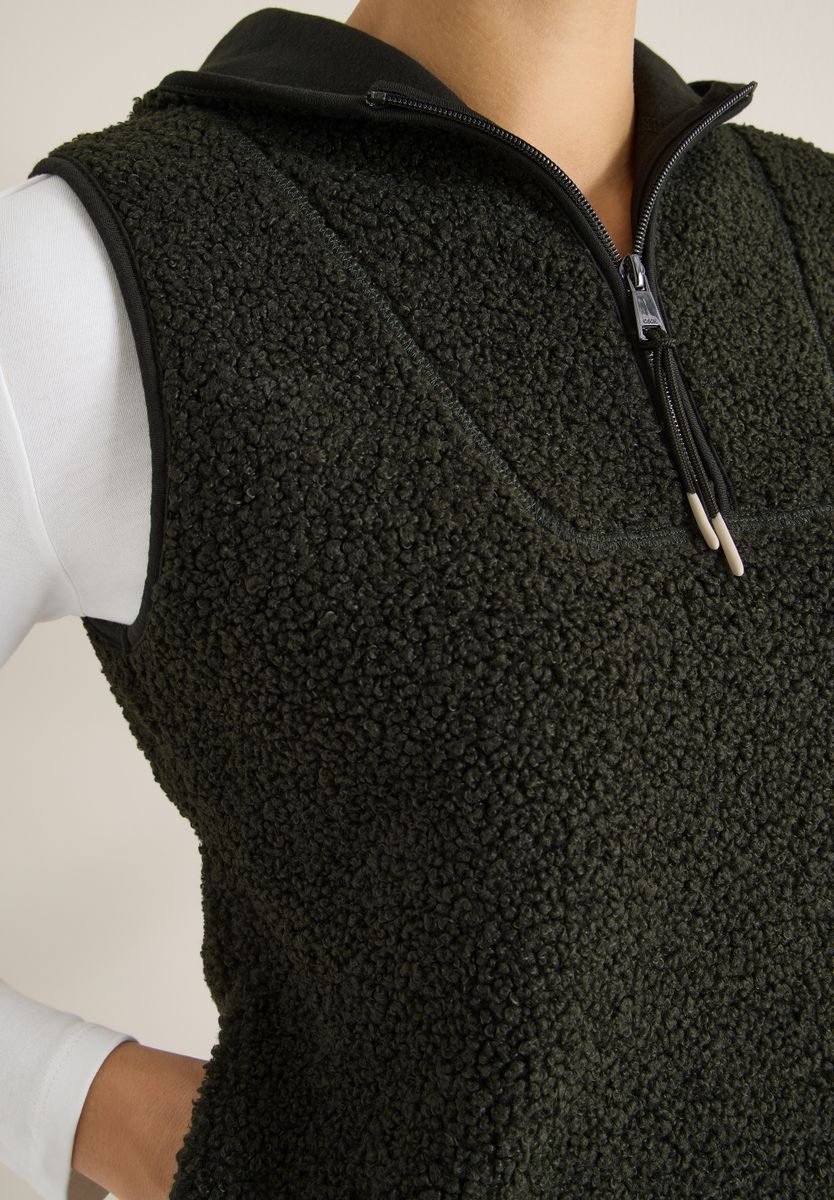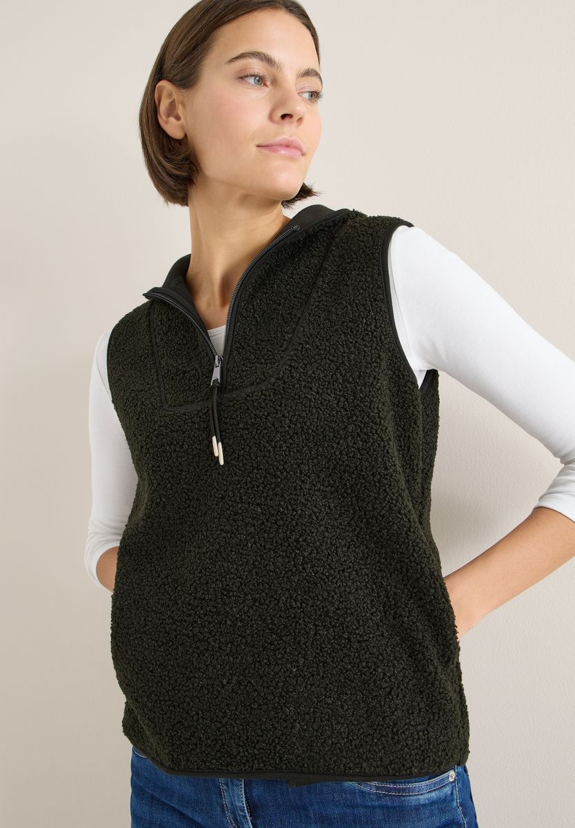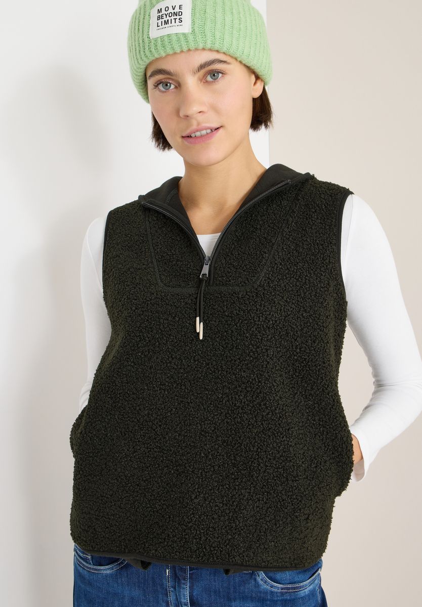 Die Weste von CECIL aus weicher Teddyqualität bringt wohlige Wärme in deinen Alltagslook. Mit Troyerkragen und Kapuze kombiniert sie lässigen Stil mit maximalem Kuschelfaktor. Ideal für drüber und drunter – für alle, die es gemütlich mögen. Damenweste Weiche Teddyqualität Troyerkragen und Kapuze Weich und gemütlich Material: 100% Polyester FARBNR