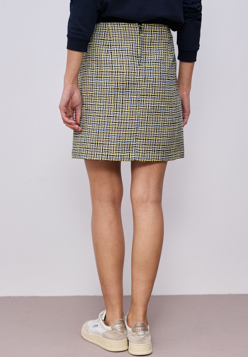 Der Bouclé Rock von Street One für Damen im Style Maja bringt mit seiner feinen Struktur und den seitlichen Taschen einen modernen Twist in dein Outfit. Mid Waist, knielang geschnitten und mit Zipper hinten versehen, vereint er Komfort mit Eleganz. Perfekt für deinen individuellen Style. Bouclé Rock Casual Knielang Mid Waist Modern Material: 100% Polyester FARBNR