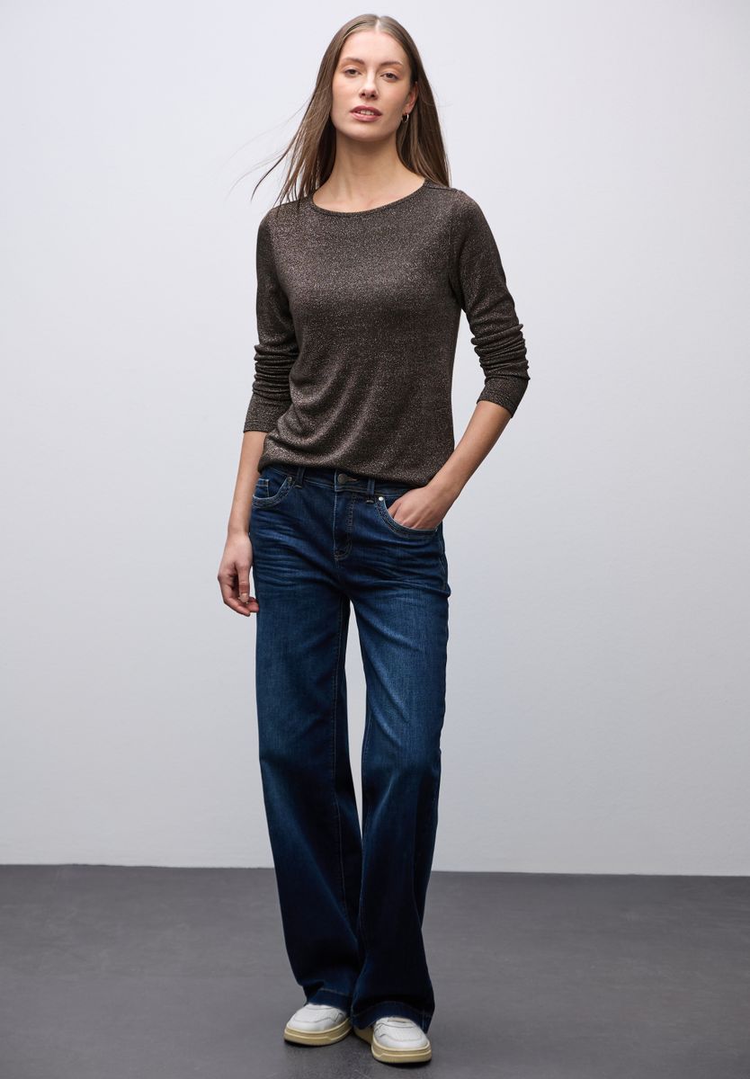 Das Langarmshirt von Street One für Damen begeistert mit glitzerndem Look und femininem U-Boot-Ausschnitt. Die weiche Qualität macht es zum idealen Stylingpartner für festliche Outfits oder einen Hauch Glamour im Alltag. Damenshirt Glitzer-Look U-Boot-Ausschnitt Langarm Highlight-Piece zum Kombinieren Material: 82% Viskose, 10% Metallfasern, 8% Polyamid FARBNR