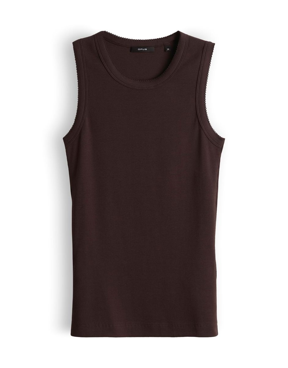 schmale Passform, figurbetonter Schnitt, breiter Träger, Rundhalsausschnitt, Rückenlänge ca. 61 cm bei Größe 36, Model Größe 177 cm – trägt Größe 36, Jersey, feine Rippstruktur, weicher Griff, elastischer Stoff, bogenförmige Spitzenborten FARBNR