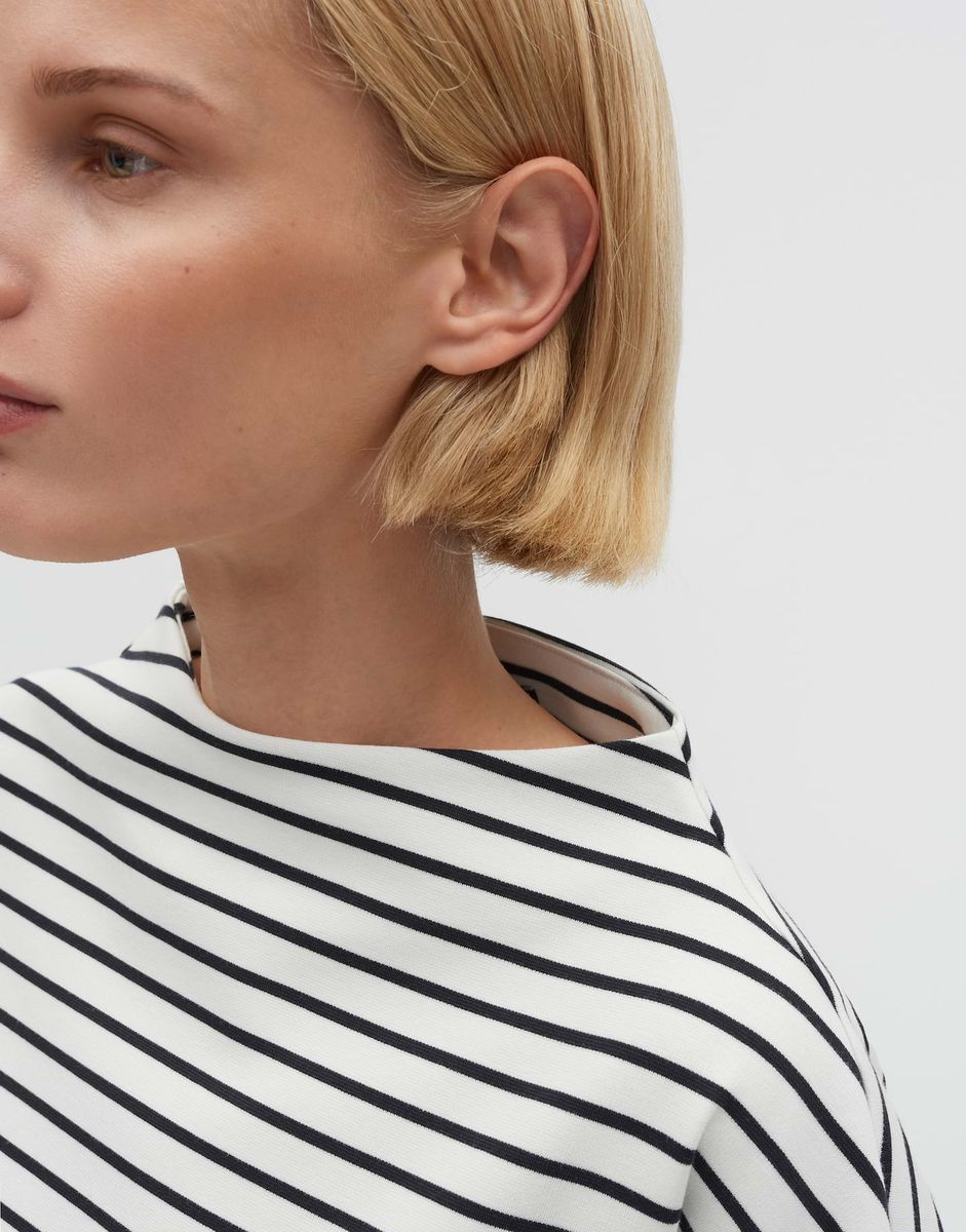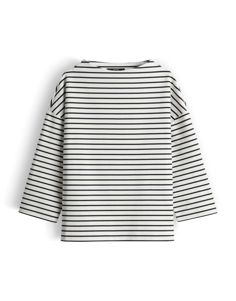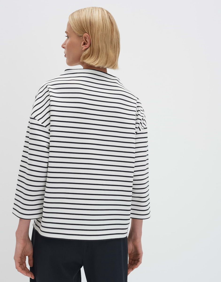 weite Passform, leicht ausgestellt geschnitten, überschnittene Schulter mit 3/4 Arm, Funnel Neck, Rückenlänge ca. 58 cm bei Größe 36, Model Größe 176 cm – trägt Größe 36, Jersey, weicher Griff, formstabil, pflegeleicht FARBNR