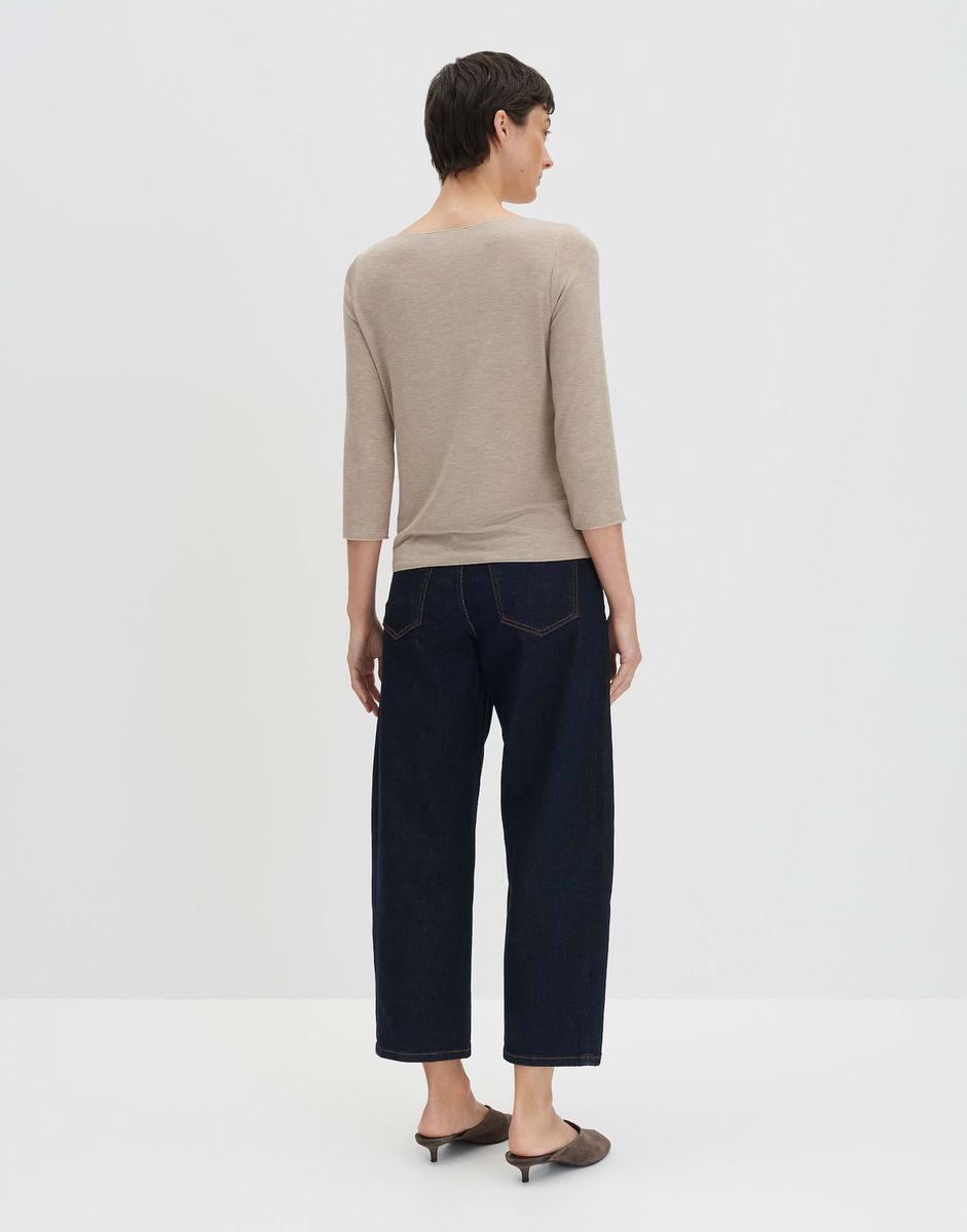 normale Passform, gerader Schnitt, normale Länge, 3/4 Arm, Rundhalsausschnitt, Rückenlänge ca. 56 cm in Größe 36, Schwarz: Model Größe 177 cm – trägt Größe 36, Grau: Model Größe 180 cm – trägt Größe 36, ECOVERO™ Viskose Mix, Jersey, weicher Griff, elastischer Stoff, Rollkanten FARBNR
