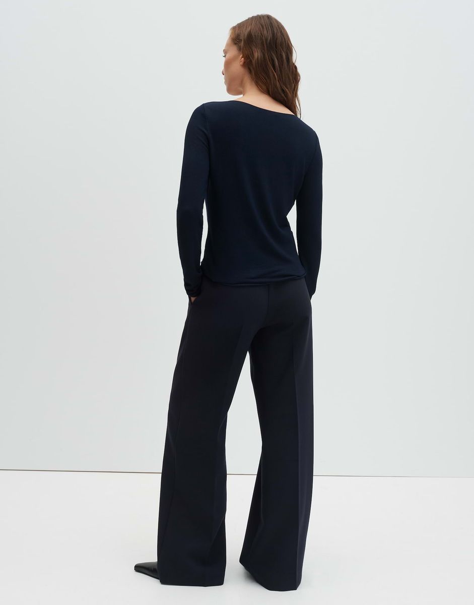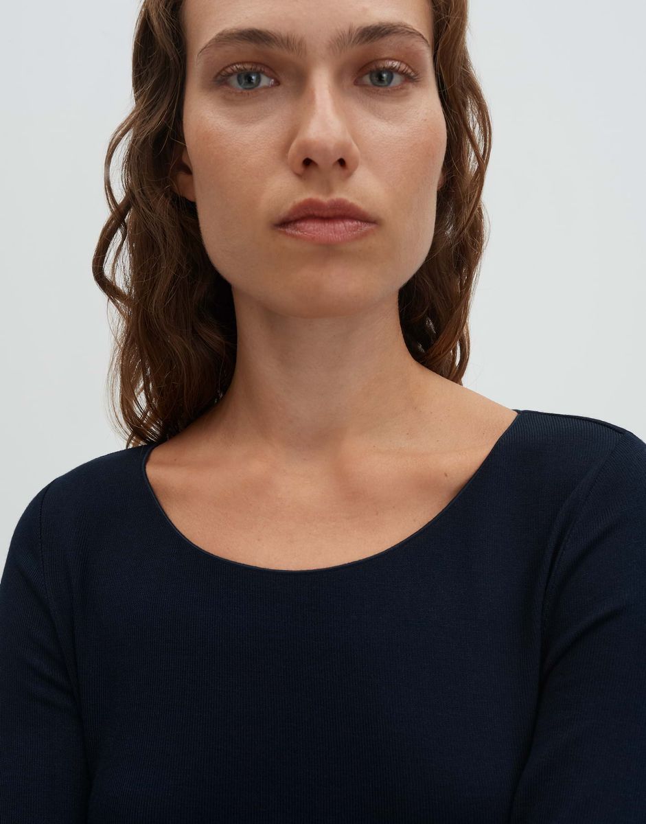 normale Passform, gerader Schnitt, Langarm, weiter Rundhalsausschnitt, Rückenlänge ca. 56 cm in Größe 36, Model Größe 177 cm – trägt Größe 36, Jersey, weicher Griff, elastischer Stoff, Rollkanten FARBNR