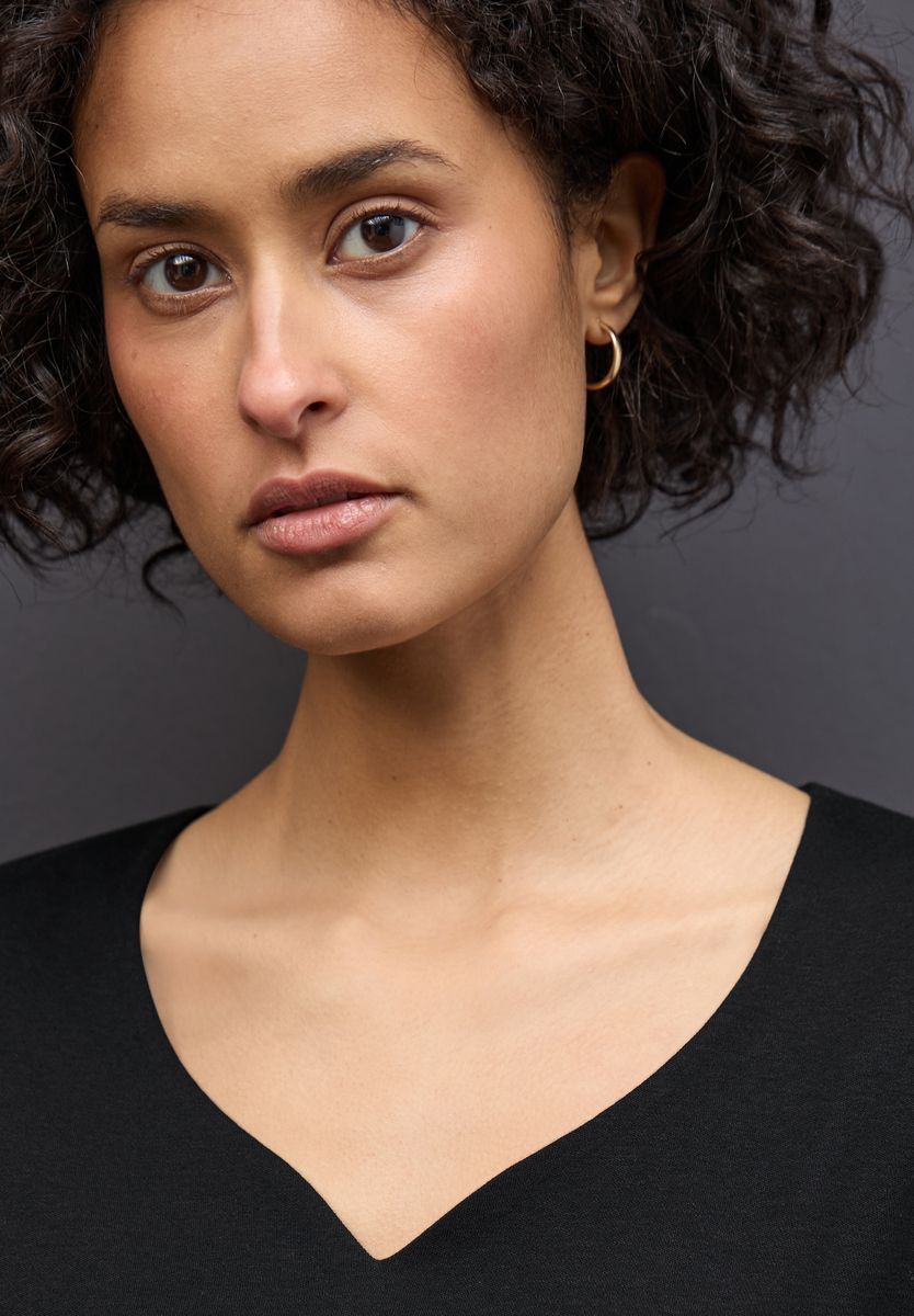 Dieses Basic Shirt von Street One für Damen setzt auf feminine Details: Der Herzausschnitt bringt einen verspielten Twist, während die gedoppelte Front für blickdichte Qualität sorgt. Der weiche Baumwoll-Modalmix macht das Langarmshirt besonders angenehm zu tragen. Basic Shirt Herzausschnitt Langarm Gedoppelte Blickdichte Front Softer Baumwoll-Modalmix Material: Obermaterial: 50% Baumwolle, 50% Modal; Futter: 100% Baumwolle FARBNR