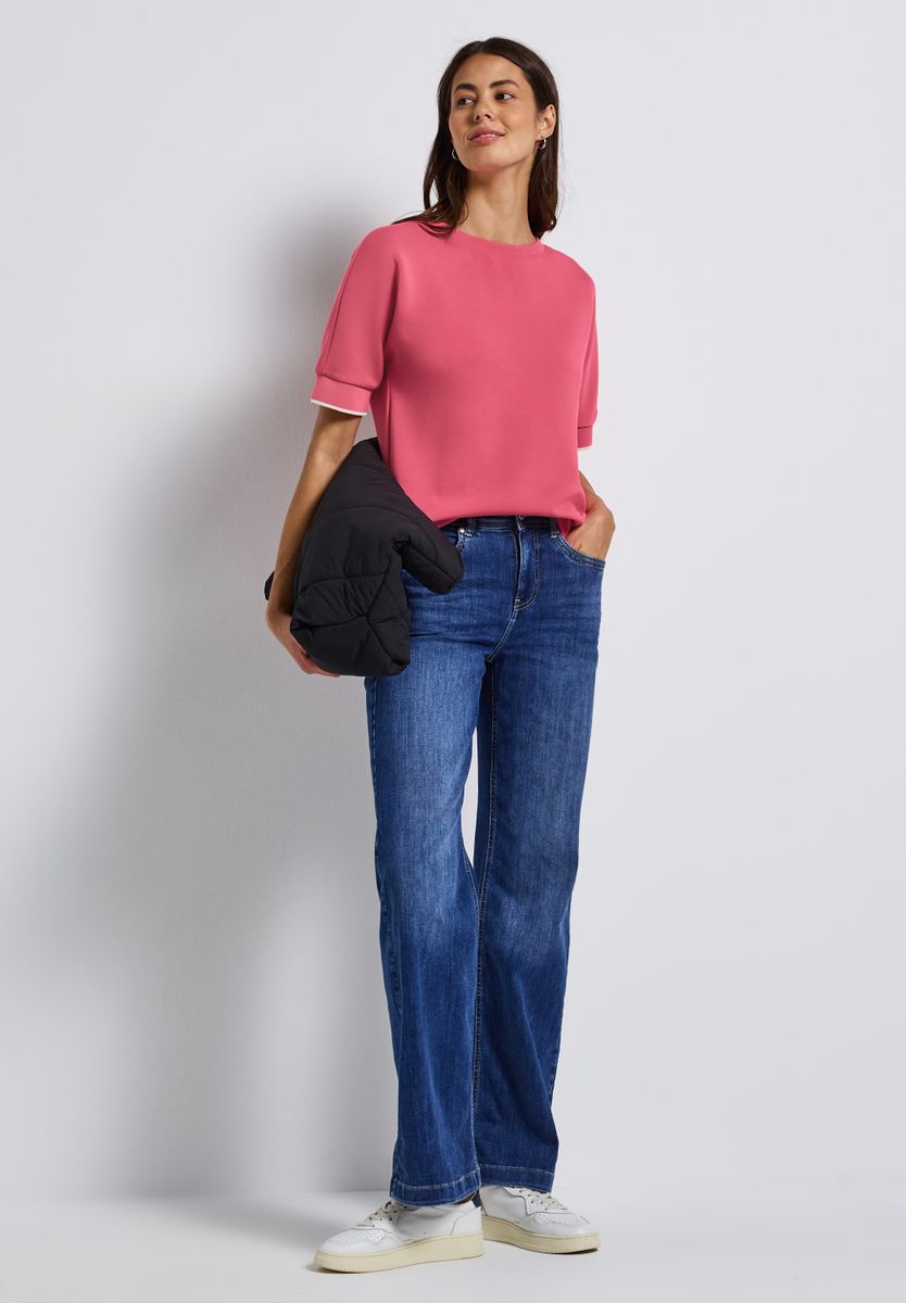 Das Silk-Look Shirt von Street One für Damen hat einen Rundhalsausschnitt und kurze Ärmel mit Rippbündchen und einem dezenten Kontrastdetail. Seitliche Schlitze im Saum und der seidige Glanz verleihen dem T-Shirt einen modernen Look. Der Stretchanteil im Material sorgt für hohen Tragekomfort. T-Shirt Rundhalsausschnitt Kurzarm mit Rippbündchen und Kontrastdetail Seitliche Schlitze Silk-Look Qualität mit Stretchanteil Material: 46% Modal, 46% Polyester, 8% Elasthan FARBNR