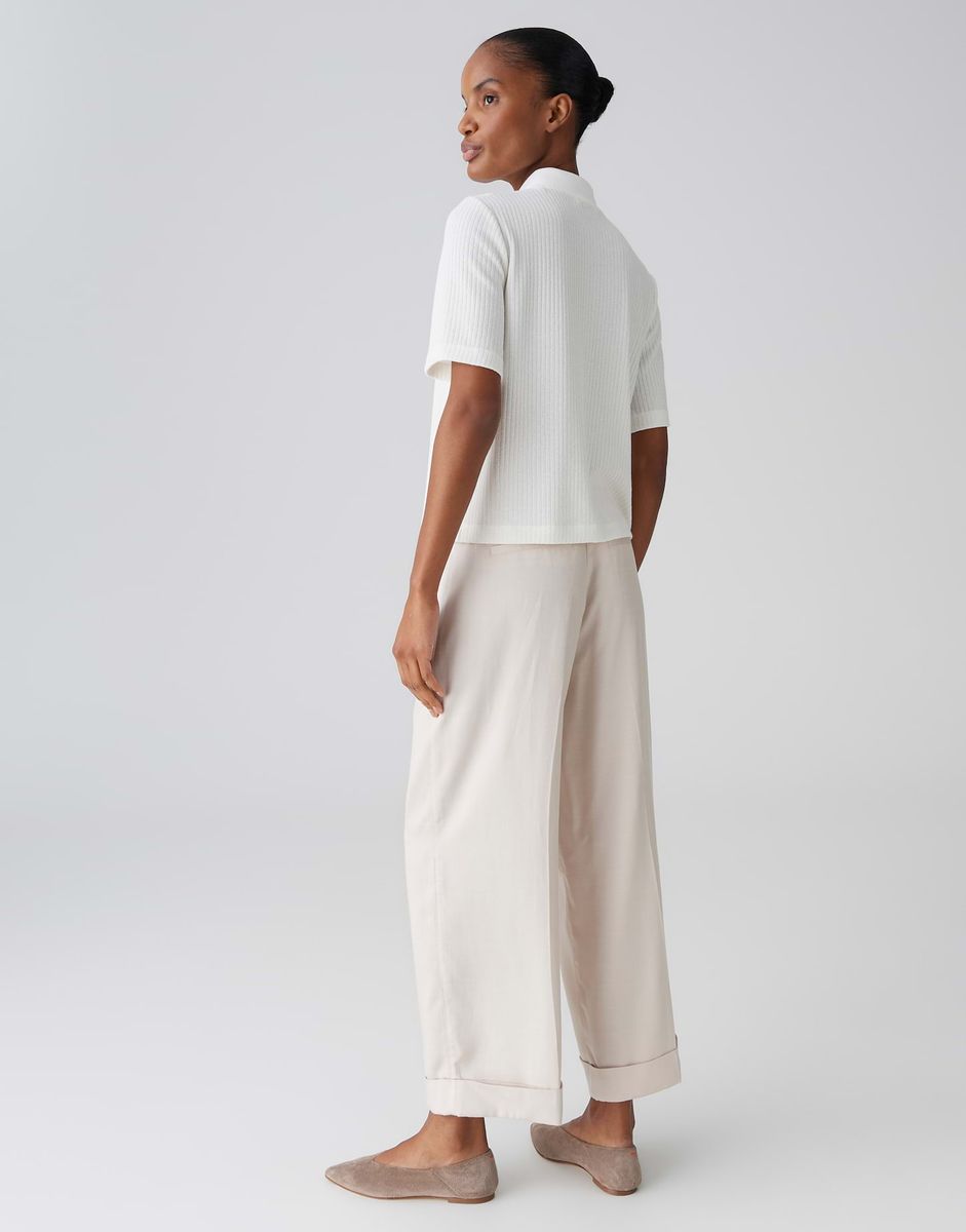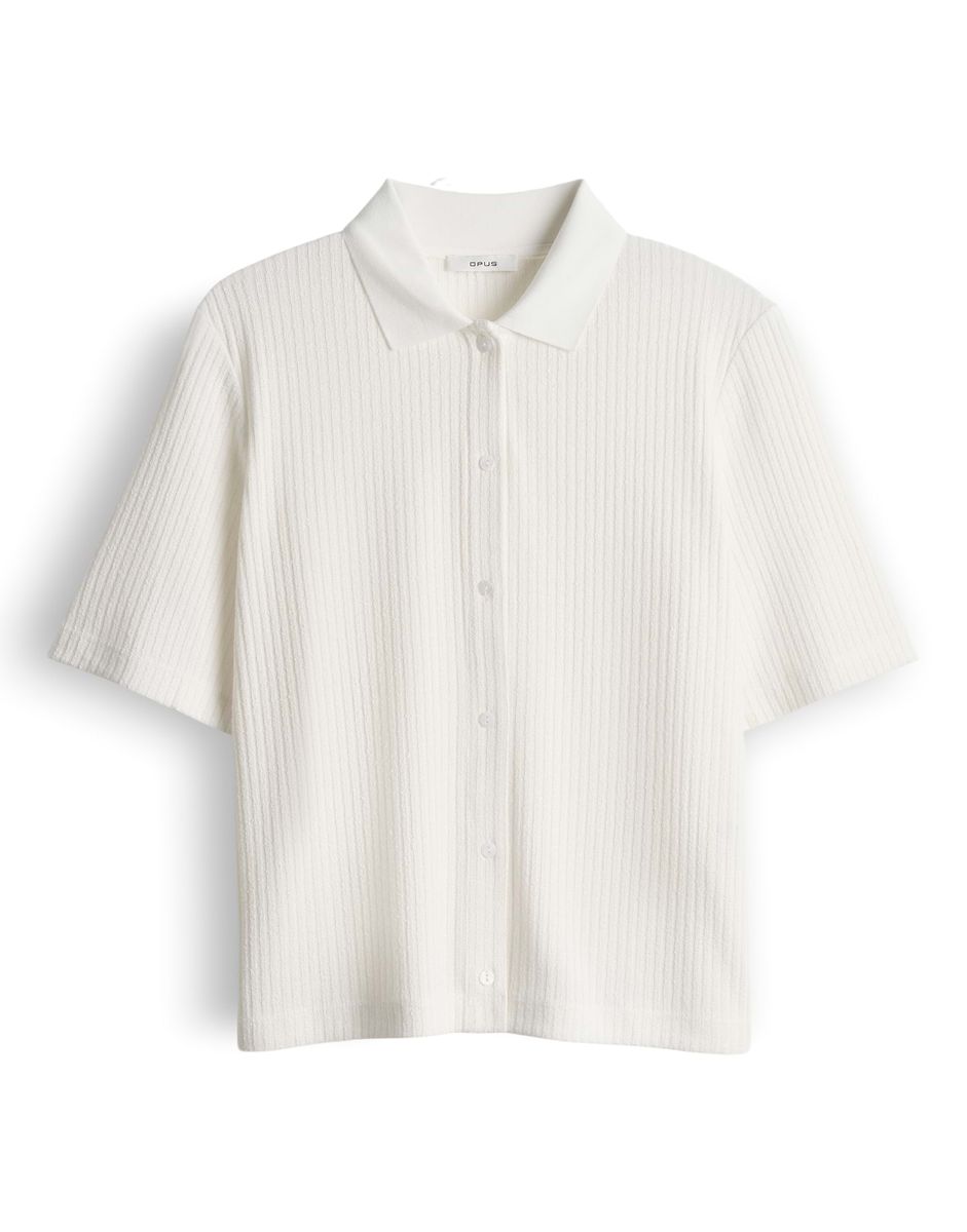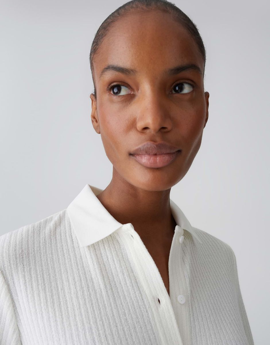 lockere Passform, gerader Schnitt, verkürzte Länge, Halbarm, Polokragen, Rückenlänge ca. 55 cm bei Größe 36, Model Größe 177 cm – trägt Größe 36, Jersey, Rippstruktur, weicher Griff, elastischer Stoff, Knopfleiste FARBNR