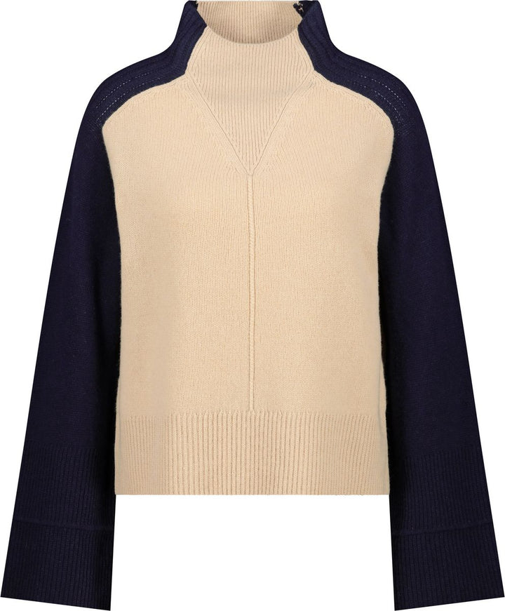 Erleben Sie stilvolle Eleganz mit diesem Pullover aus einer hochwertigen Wollmischung im modernen Colorblock-Design und mit weicher Haptik. FARBNR