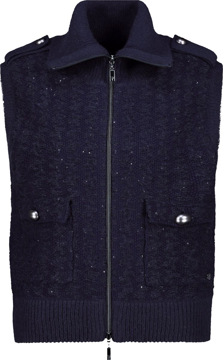 Verleihen Sie Ihrem Look mit dieser eleganten Tweed-Strickweste aus einer hochwertigen Baumwoll-Mohair-Mischung und Pailletten das gewisse Etwas. FARBNR