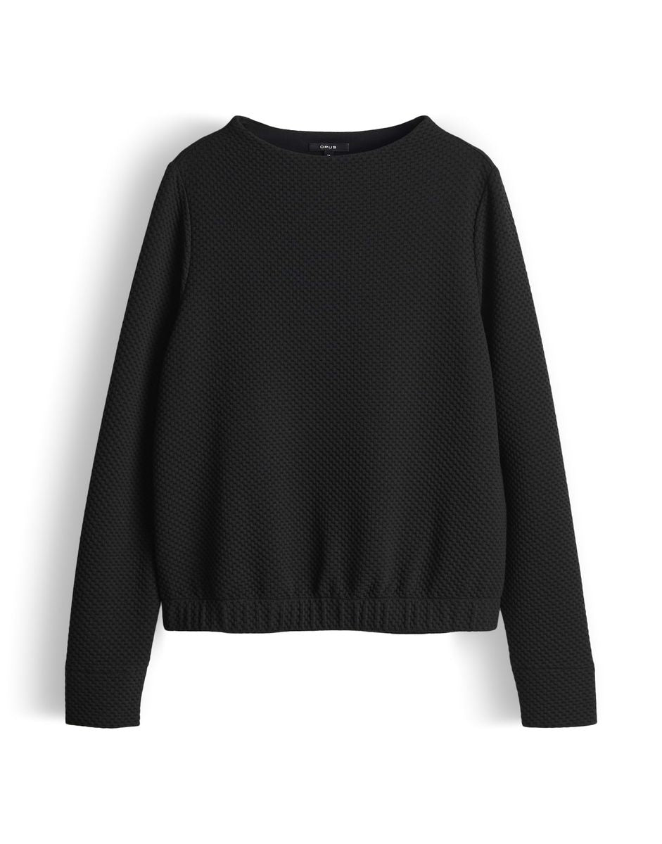 lockere Passform, Stehkragen, Langarm, Rückenlänge ca. 58 cm bei Größe 36, Model Größe 177 cm – trägt Größe 36, Sweat, Waffelstruktur, elastischer Stoff, geraffter Gummibund am Saum FARBNR