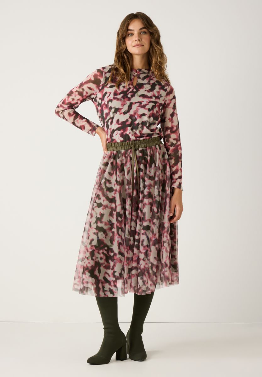 Der feminine Meshrock von MORE & MORE mit modernem Aquarell-Print kann mit leichtem Pullover genauso gut gestylt werden wie mit eleganter Satinbluse oder sportivem T-Shirt.