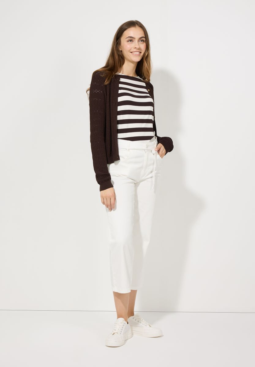 Ein absoluter "Evergreen" von MORE & MORE ist das zweifarbige Ringelshirt mit 3/4 langen Ärmeln und U-Boot Ausschnitt. Es funktioniert 24/7, egal ob zum seriösen Businessanzug, zur verwaschenen Jeans oder zur lässigen Cargohose, sogar zum einfarbigen Maxirock sieht das T-Shirt super aus.