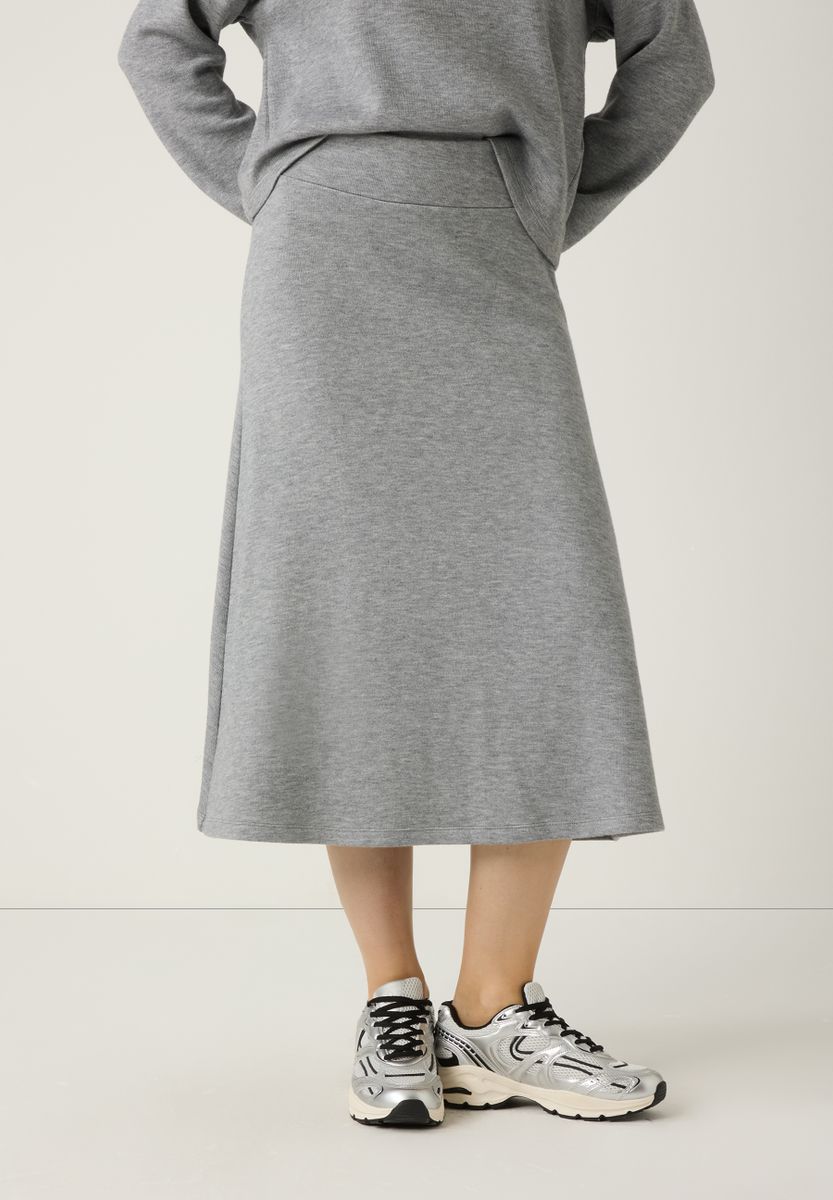 Stylish, bequem und perfekt für jeden Tag: Der schwingende A-Linien-Rock von MORE & MORE in moderner Midi-Länge sorgt dank der soften Jerseyware und dem elastischen Bund für maximalen Komfort und ist ein vielseitiger Favorit für entspannte Herbst-Looks. Stylen Sie das Trendpiece wahlweise casual mit passendem Sweatshirt zu einem gemütlichen Zweiteiler oder etwas eleganter mit femininer Satinbluse und Heels.