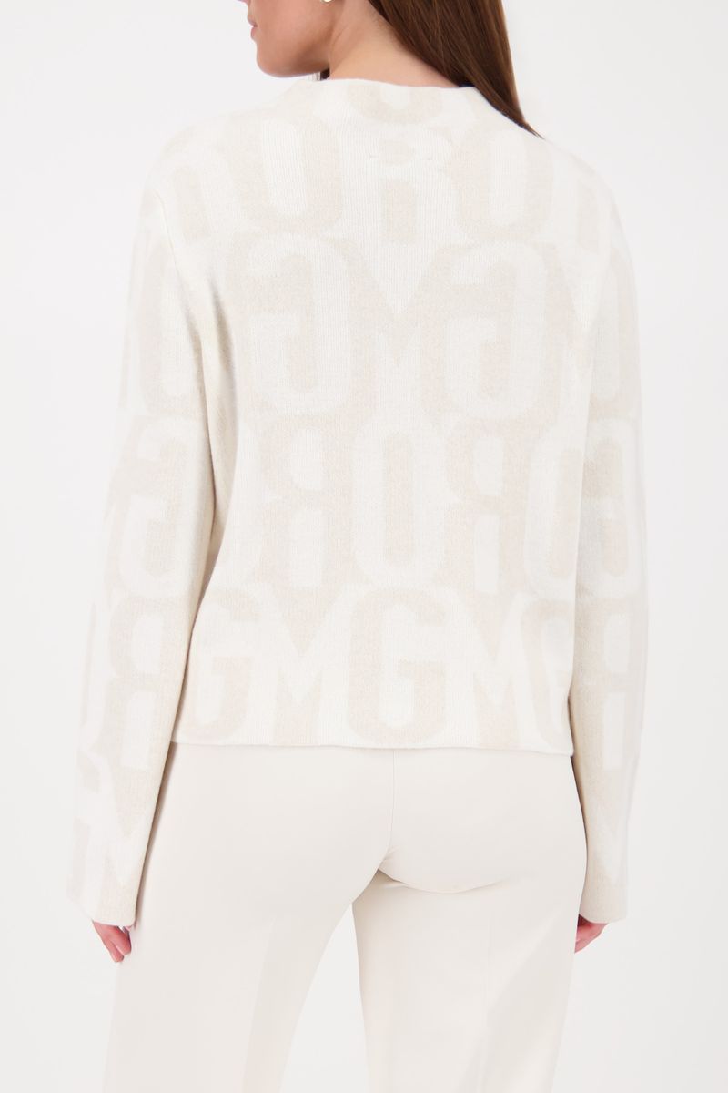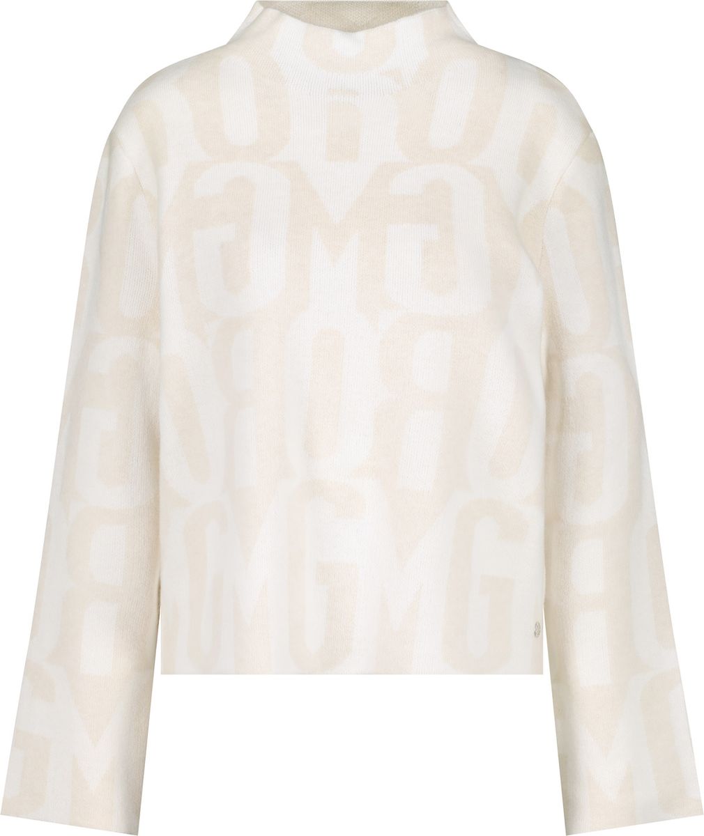 Stylischer Pullover aus hochwertiger Wolle und fließender Viskose, mit weicher Haptik, Stehkragen und modernem Schriftmuster im Regular Fit.