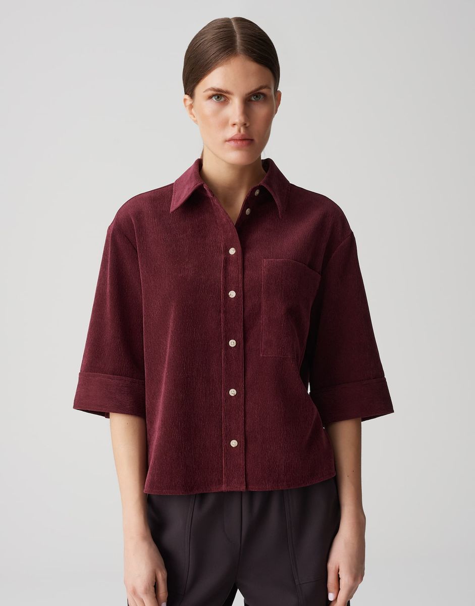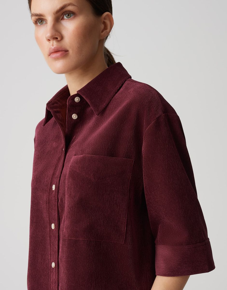 lockere Passform, leicht ausgestellt geschnitten, 3/4 Arm, Hemdblusenkragen, Rückenlänge ca. 61 cm bei Größe 36, Model Größe 175 cm – trägt Größe 36, Cord, feine Rippstruktur, weicher Griff, aufgesetzte Brusttasche, Kellerfalte im Rücken, Knopfleiste, Schlitze an der Manschette