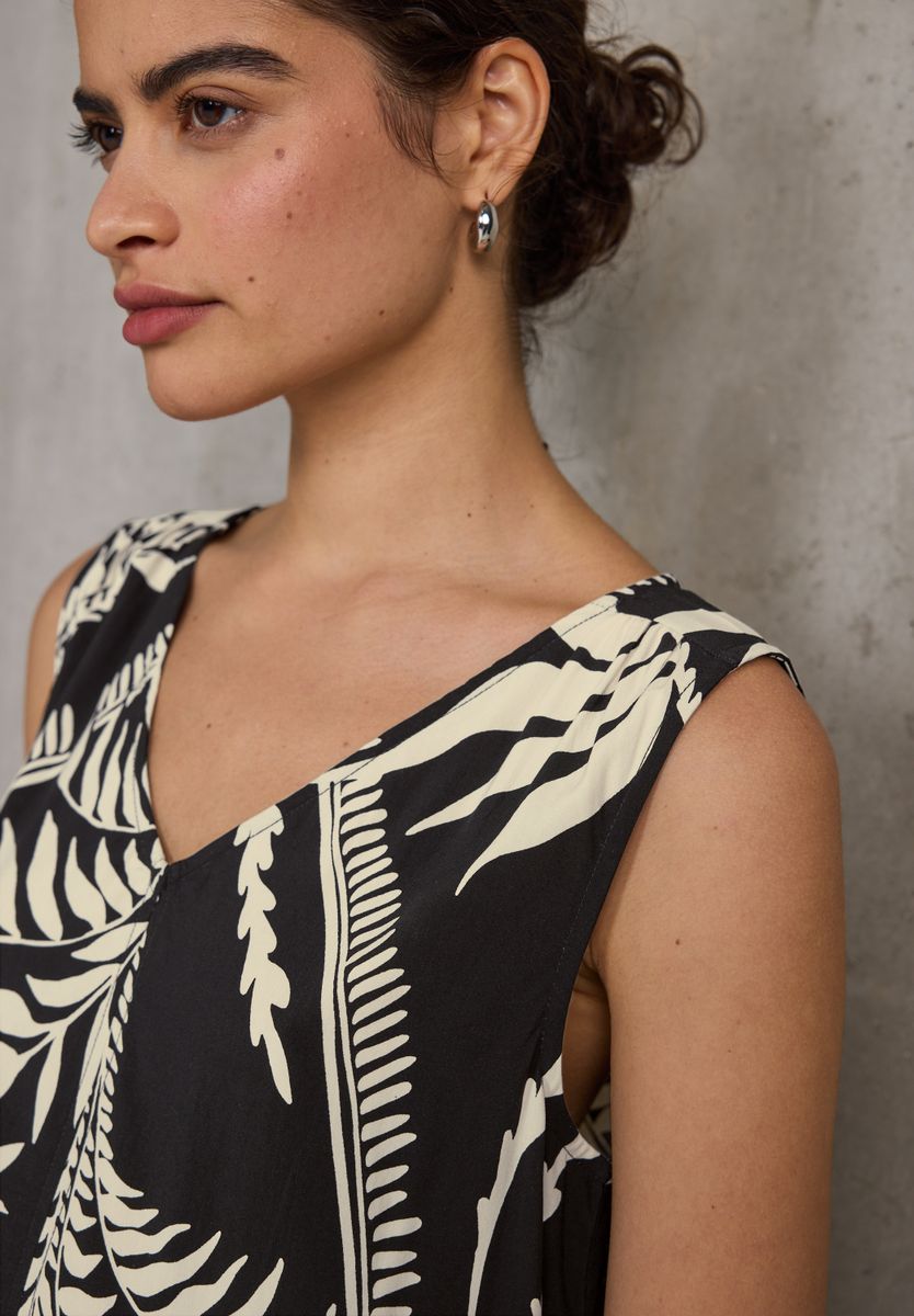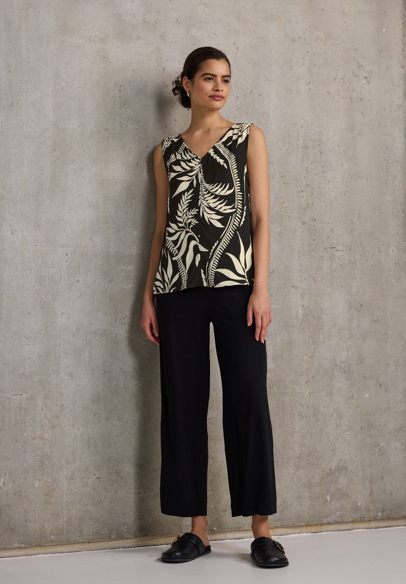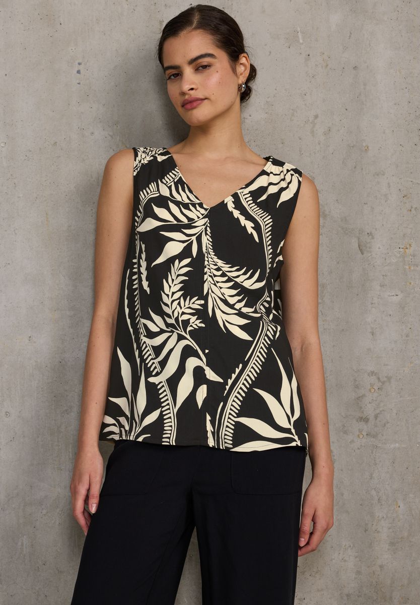 Die ärmellose Bluse von Street One Studio für Damen bringt mit ihrem floralen Muster sommerliche Frische in dein Outfit. Der V-Ausschnitt und die Raffung an den Schultern sorgen für eine feminine Silhouette. Ärmellose Bluse Florales Muster V-Ausschnitt Raffung an den Schultern Reine Viskose Material: 100% Viskose