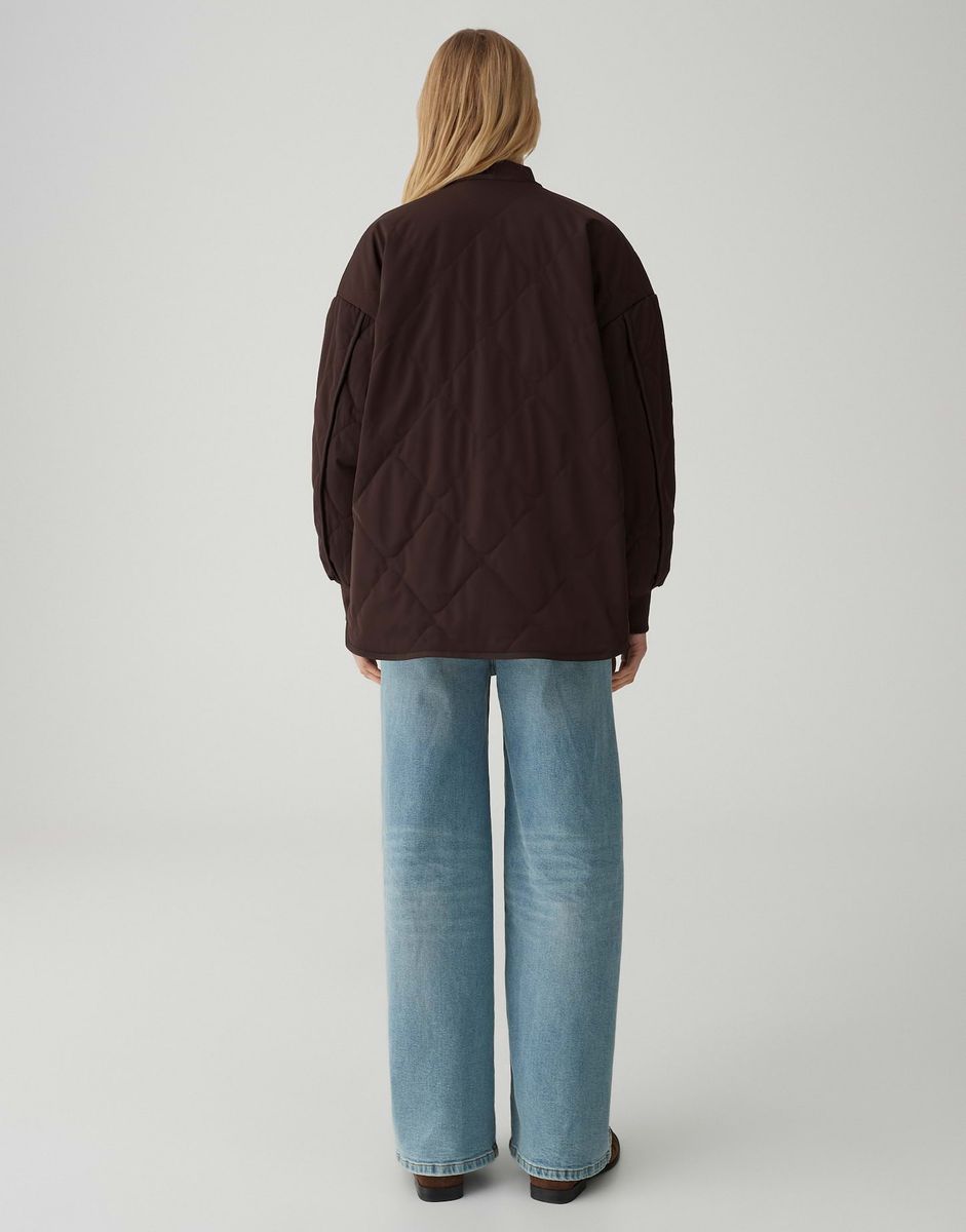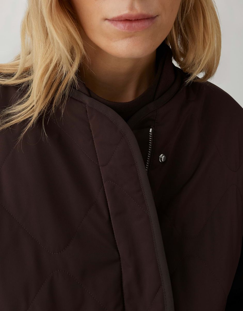 weite Passform, leicht ausgestellter Schnitt, überschnittene Schulter mit Langarm, Blousonkragen, Rückenlänge ca. 75 cm bei Größe 36, Model Größe 177 cm – trägt Größe 36, Webware, dezente Twillstruktur, glatter Griff, matter Glanz in der Oberfläche, leicht wattiert, Steppmuster, Innentasche, abgerundeter Saum, verdeckter Reißverschluss, elastische Rippbündchen FARBNR