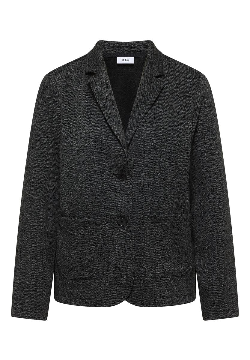 Der Herringbone Blazer von CECIL für Damen bringt klassischen Chic in deinen Alltag. Das markante Herringbone-Muster und aufgesetzte Taschen verleihen dem Blazer einen stilvollen Look, während der Reverskragen und die langen Ärmel für zeitlose Eleganz sorgen. Perfekt kombinierbar – ob lässig zur Jeans oder schick im Office. Damenblazer Herringbone Muster Aufgesetzte Taschen Reverskragen Langarm Material: 79% Polyester, 18% Viskose, 3% Elasthan FARBNR