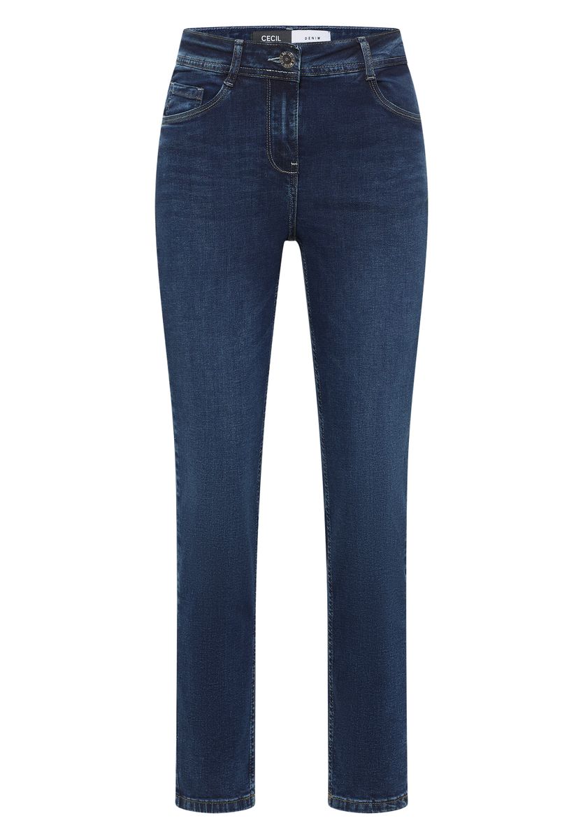 Die Jeans im Style Vicky von CECIL für Damen begeistert mit figurbetonter Passform dank High Waist und Skinny Legs. Die blaue Waschung und der elastische Baumwollmix sorgen für Komfort und einen modernen Look. Trage die Slim Fit Jeans figurbetont oder wähle eine Nummer größer für eine lockere Passform. Jeanshose High Waist und Skinny Legs Blaue Waschung Baumwollqualität mit Stretchanteil 5-Pocket-Style Material: 97% Baumwolle, 3% Elasthan FARBNR