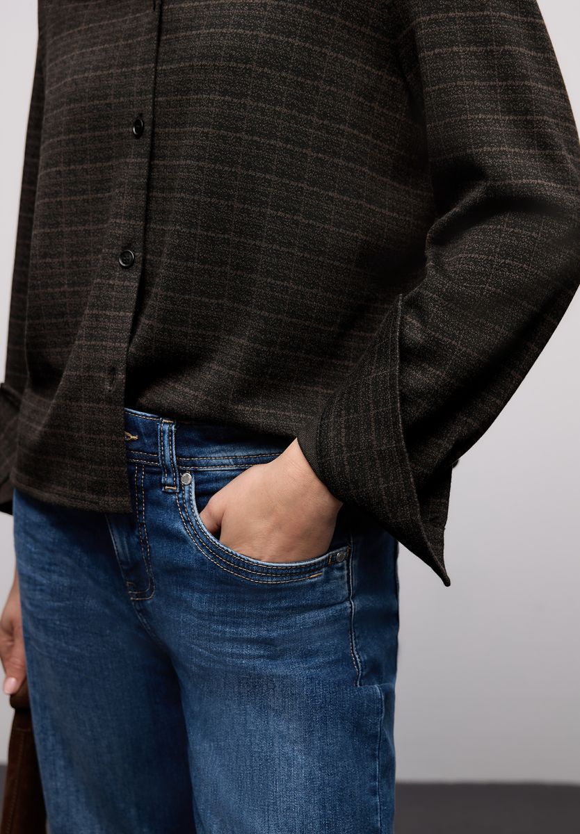 Diese Hemdbluse von Street One für Damen überzeugt mit einem klassischen Karomuster in strukturierter Jacquard-Optik. Hemdkragen, Knopfleiste und seitliche Schlitze machen sie zum modernen Klassiker. Ein stilvoller Begleiter für deine Everyday-Looks. Langarmbluse Karomuster Hemdkragen Knopfleiste Seitliche Schlitze Material: 63% Polyester, 34% Viskose, 3% Elasthan FARBNR