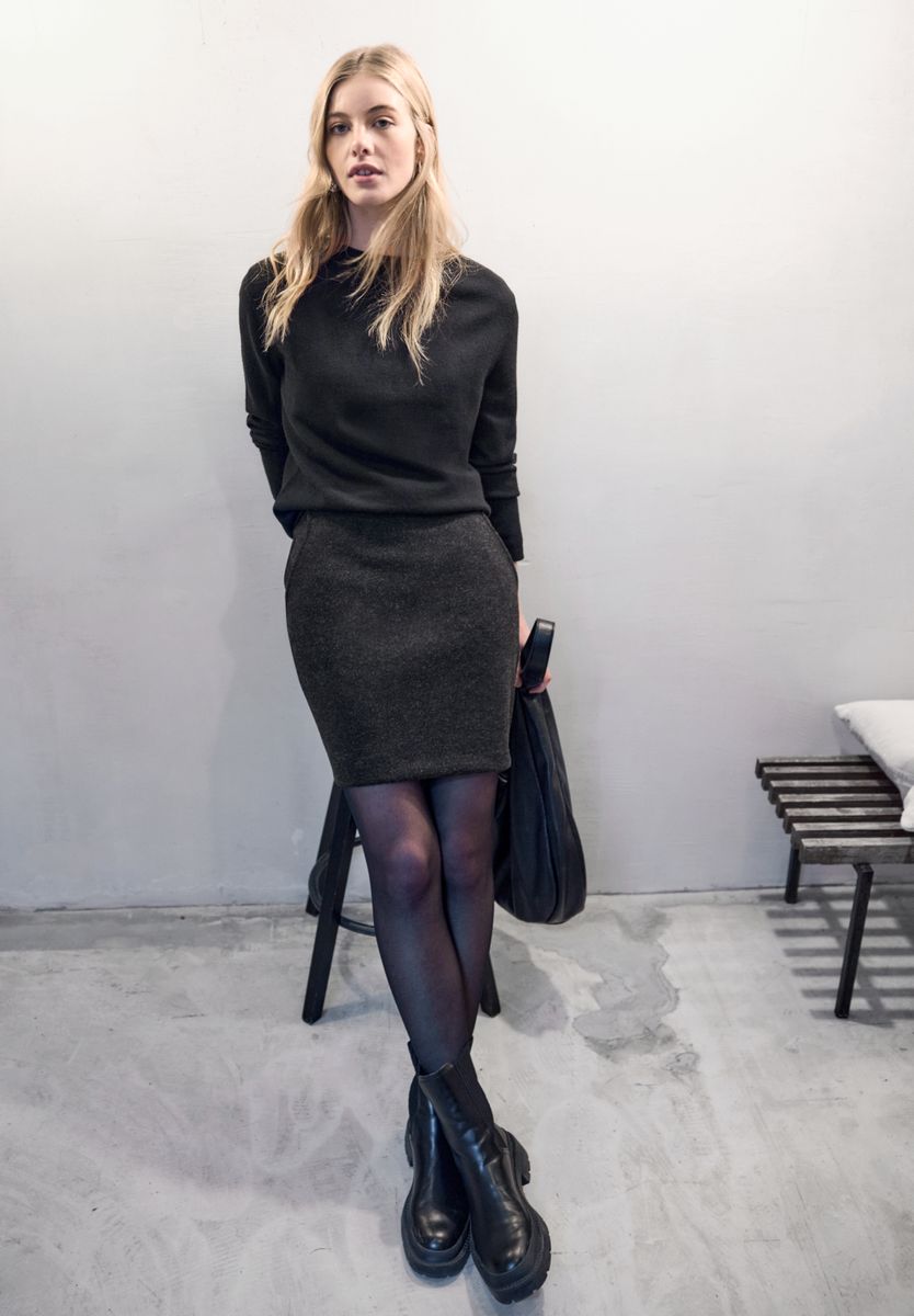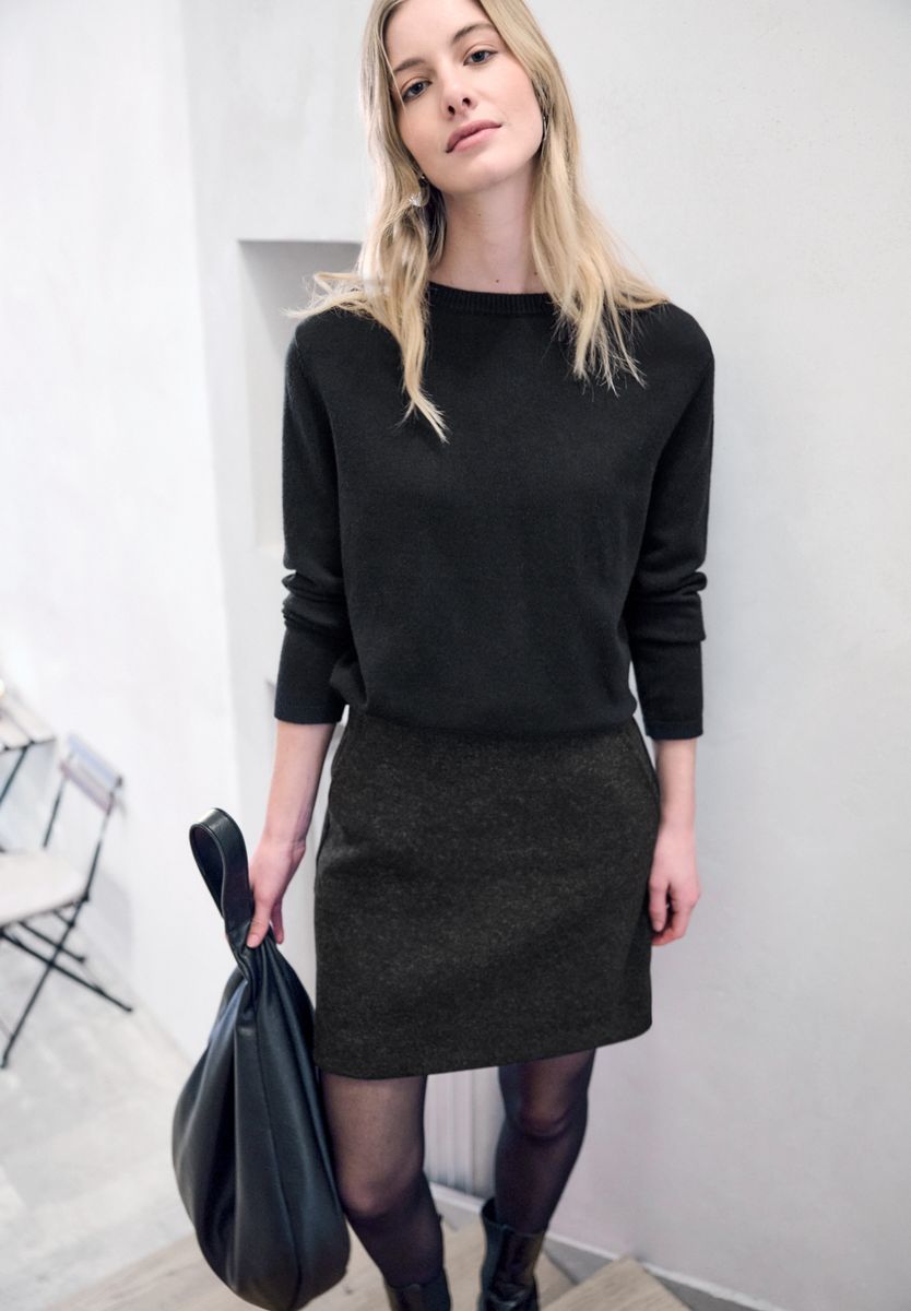 Mit seinem Melange-Look ist dieser Rock von Street One Studio für Damen ein stilvoller Begleiter für kühlere Tage. Der knielange Schnitt, ein Reißverschluss hinten und seitliche Taschen machen den Rock in Wolloptik funktional und stilvoll zugleich. Ideal für elegante Alltags-Styles mit Komfort. Knielanger Rock Melange-Look Reißverschluss hinten Seitliche Taschen Angenehmer Tragekomfort Material: 90% Polyester, 10% Viskose FARBNR