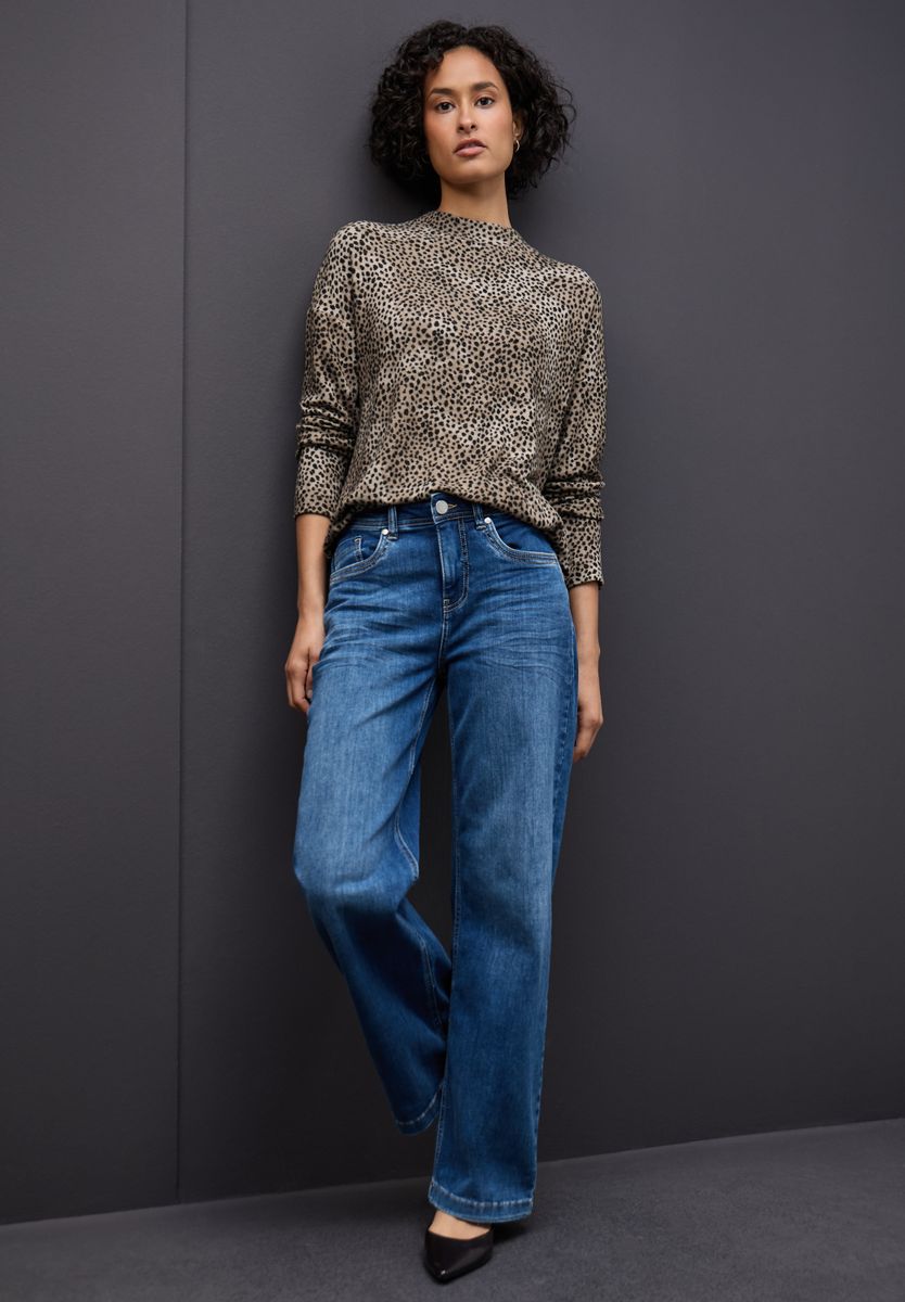 Mit diesem Shirt im Leo-Look von Street One für Damen setzt du modische Akzente. Der Turtleneck, die langen Ärmel mit Bündchen und der Tunnelzug am Saum verleihen dem Shirt einen lässigen Fit, während die besonders weiche Qualität für Wohlfühlmomente sorgt. Ein stylisches Must-have für trendige Alltags-Outfits. Damenshirt im Leo-Look Turtleneck Langarm mit Bündchen Tunnelzug am Saum Besonders weich Material: 80% Viskose, 15% Polyester, 5% Elasthan FARBNR