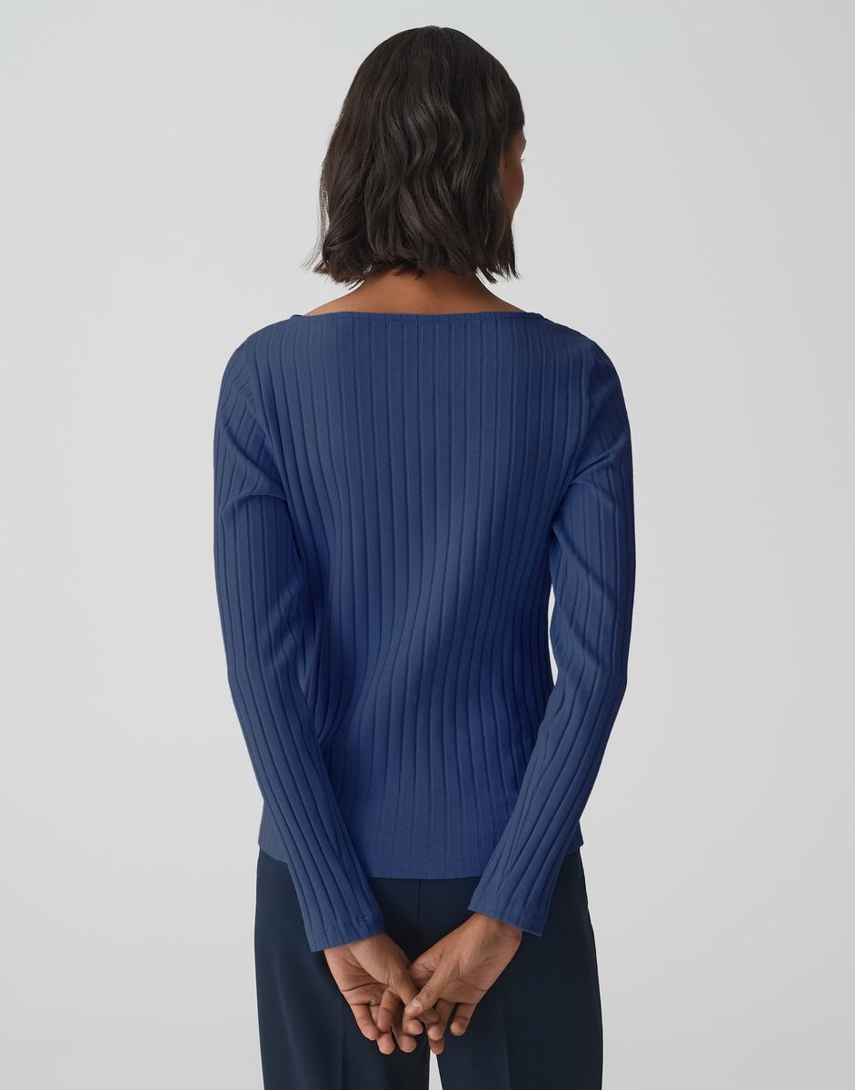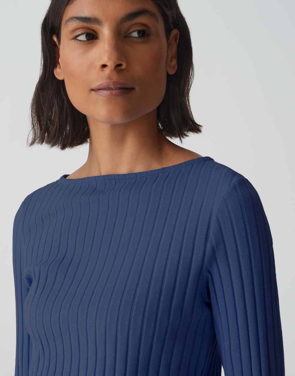 schmal geschnitten, U-Boot-Aussschnitt, Langarm, Rückenlänge ca. 58 cm bei Größe 36, Model Größe 177 cm – trägt Größe 36, Baumwoll Mix, Jersey, breite Rippstruktur, weicher Griff, elastisch FARBNR