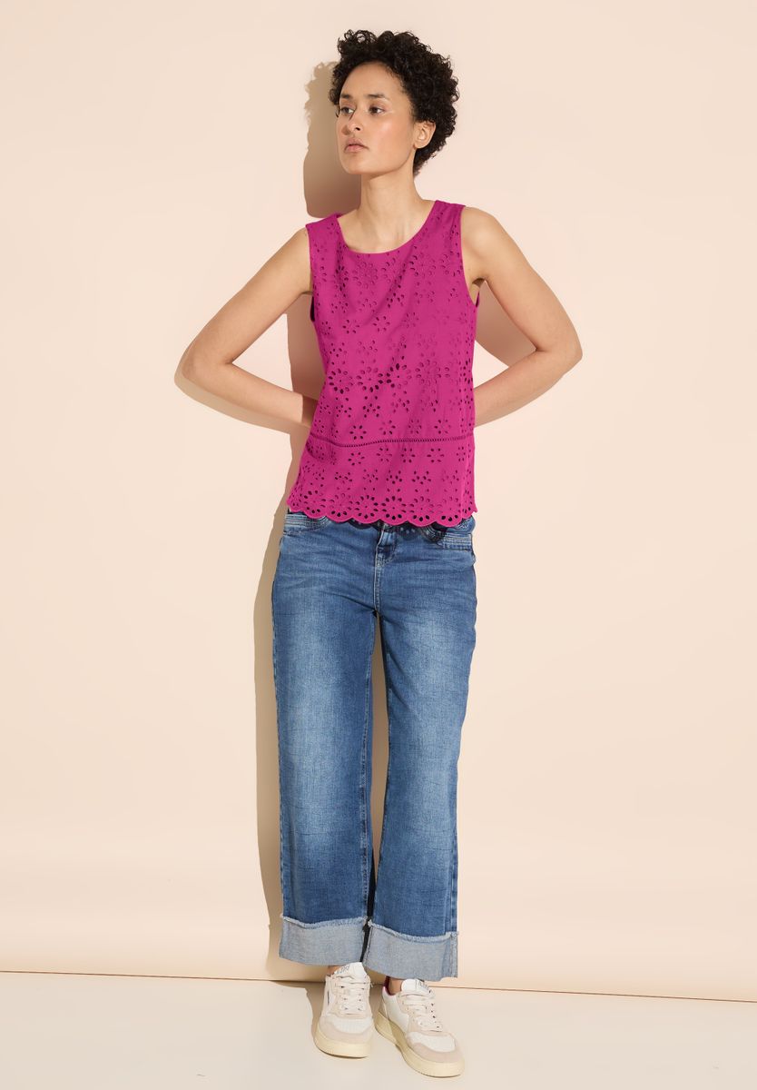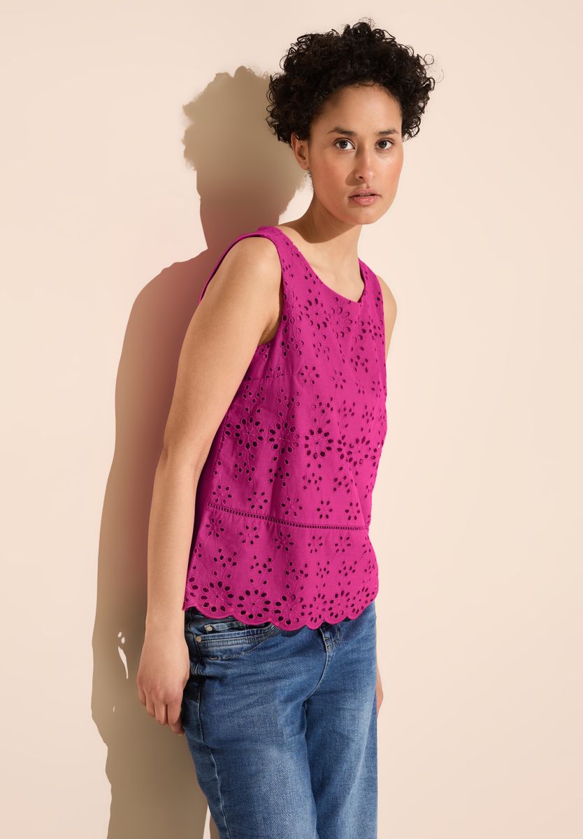 Das Top mit Stickerei von Street One für Damen ist ein charmantes Sommertop, das dein Outfit aufwertet. Mit seinem Rundhalsausschnitt bietet es eine klassische Silhouette, während die Lochstickerei auf der Front einen verspielten Akzent setzt. Der bequeme Jersey-Rücken sorgt für Komfort und optimale Bewegungsfreiheit. Sommertop Rundhalsausschnitt Lochstickerei Front Bequemer Jersey Rücken Unifarbe Ärmellos Material: 50% Baumwolle, 50% Modal