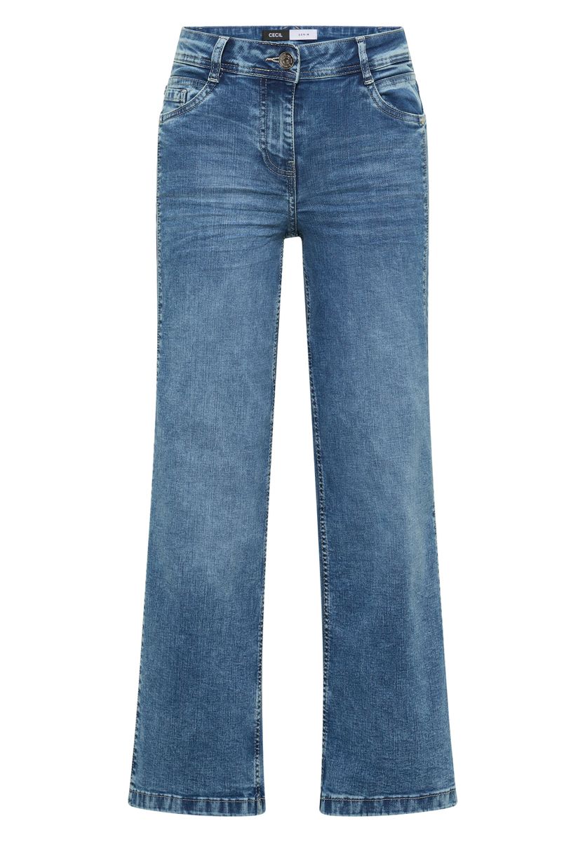 Mit dieser Wide Leg Jeans von CECIL für Damen im Style Toronto setzt du auf einen modernen Look mit hohem Tragekomfort. Der Slim Fit im oberen Bereich geht in weite Beine über und wird durch eine hellblaue Waschung frisch ergänzt. Der 5-Pocket-Style und der elastische Baumwollmix machen sie zum Alltagsliebling mit modischem Flair. Denim Hose Slim Fit Wide Legs High Waist Lässig und modern Material: 78% Baumwolle, 20% wiederverwerteter Polyester, 2% Elasthan FARBNR