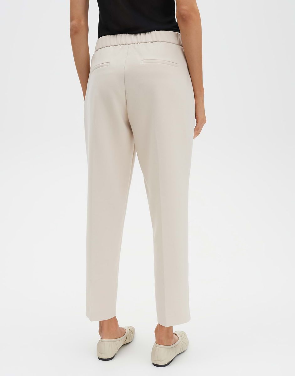 schmal zulaufendes Bein, Hosenbein Innenlänge ca. 67 cm in jeder Größe, Model Größe 173 cm – trägt Größe 36, Webware, dezente Struktur, weicher Griff, elastischer Stoff, knitterarm, Nahttaschen vorne, Zier-Paspeltaschen hinten, Bügelfalten, elastischer Gummibund, angedeuteter Hosenschlitz, vorverlegte Seitennaht FARBNR