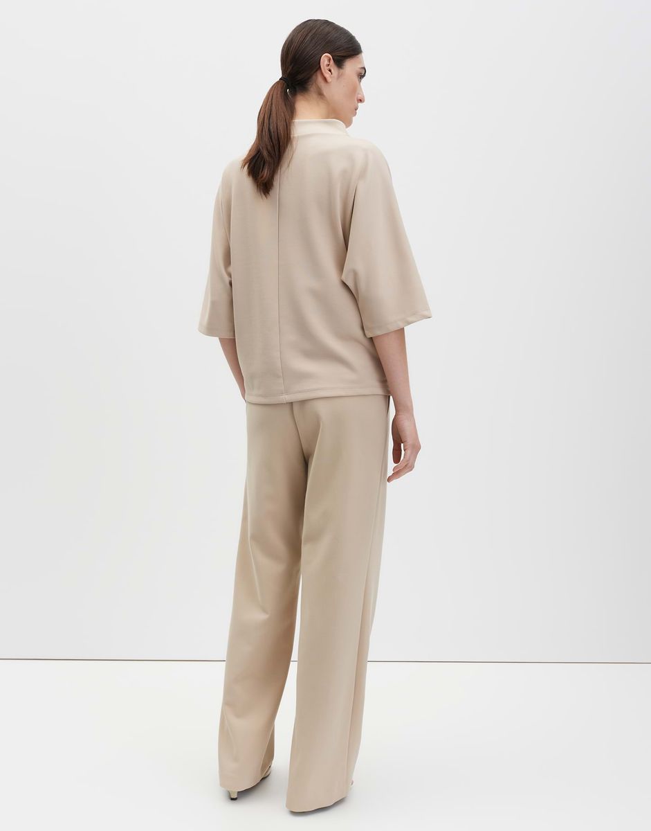 weite Passform, schmal zulaufend, überschnittene Schulter mit 3/4 Arm, Funnel Neck, Rückenlänge ca. 56 cm bei Größe 36, Model Größe 176 cm – trägt Größe 36, Sweatware, angeraute Oberfläche, weicher Griff, elastischer Stoff, weich fließender Fall, Fledermausärmel FARBNR