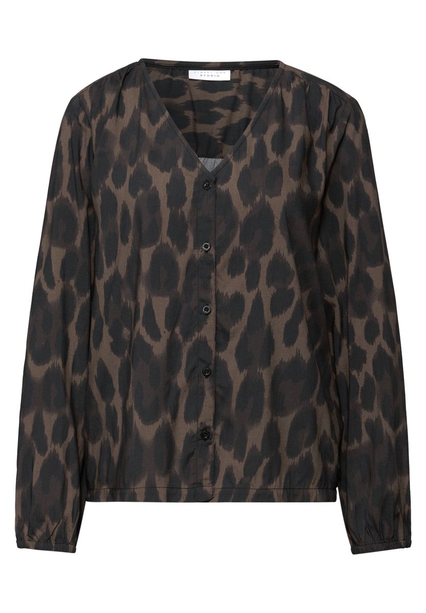 Die Bluse mit V-Ausschnitt von Street One Studio bringt mit Animal Print und durchgehender Knopfleiste besonderes Flair in deinen Look. Die weiche Viskosequalität sorgt für hohen Tragekomfort. Ein stylishes Must-have für trendige Outfits. Damenbluse Animal Print V-Ausschnitt und durchgehende Knopfleiste Langarm mit elastischen Bündchen Weiche Viskose Material: 100% Viskose FARBNR