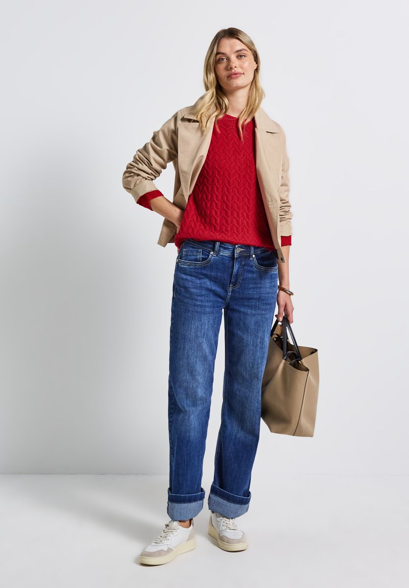 Mit seinem feinen Strukturmuster bringt dieser Pullover von Street One für Damen modische Raffinesse in deinen Kleiderschrank. Der klassische Rundhalsausschnitt und das kuschelige Material sorgen für ein angenehmes Tragegefühl. Perfekt für stilvolle Alltags-Outfits mit Wohlfühlfaktor. Strickpullover Rundhalsausschnitt Langarm Strukturmuster Angenehmer Tragekomfort Material: 40% Baumwolle, 37% Polyacryl, 20% Nylon, 3% Elasthan FARBNR