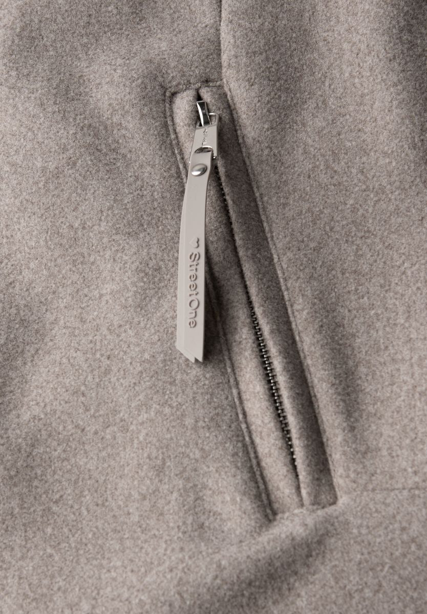 Der Damenmantel von Street One kombiniert klassische Eleganz mit modernen Details. Strickelemente am Stehkragen setzen einen stilvollen Akzent, während die Wolloptik für eine hochwertige Ausstrahlung sorgt. Seitliche Taschen mit Zipper und eine durchgehende Knopfleiste machen ihn zum perfekten Begleiter für die Übergangszeit. Damenmantel Stehkragen in Strickqualität Knopfleiste Seitliche Taschen mit Zipper Moderne Wolloptik Material: Obermaterial: 100% Polyester; Futter: 100% Polyester FARBNR